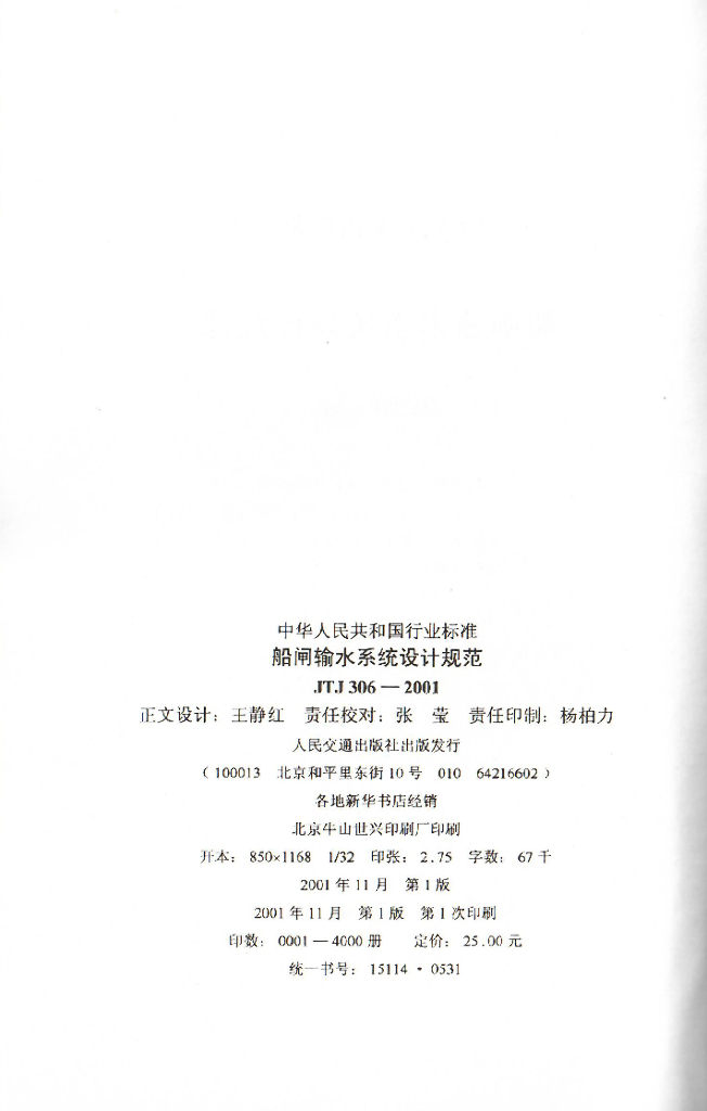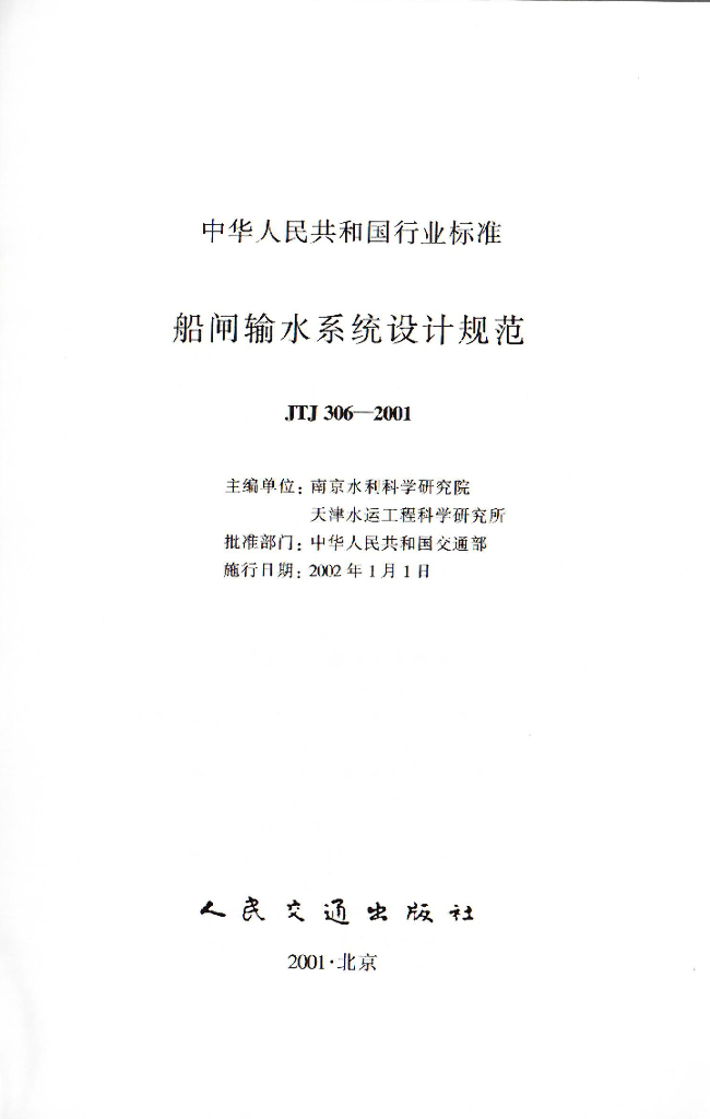 JTJ 306-2001 船闸输水系统设计规范