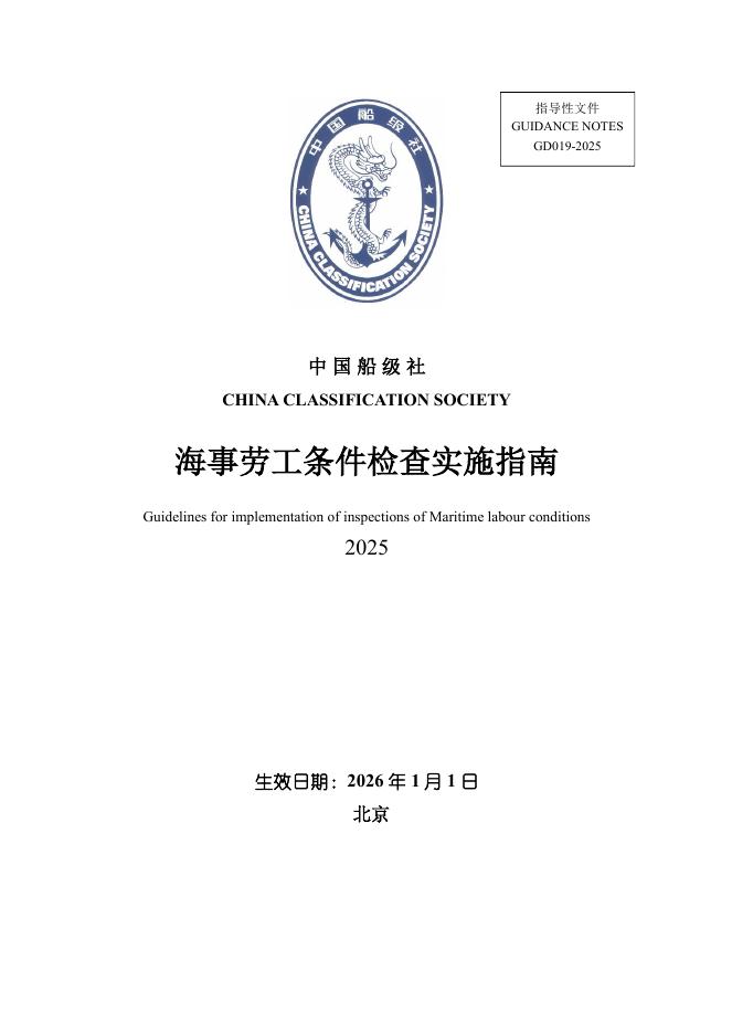中国船级社(CCS):海事劳工条件检查实施指南2025