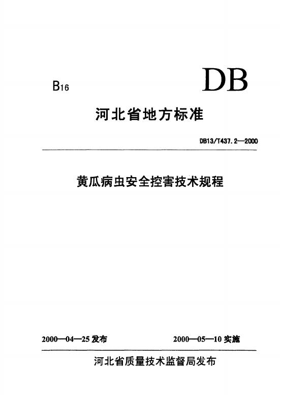 DB13/T 437.2-2000 黄瓜病虫安全控害技术规程