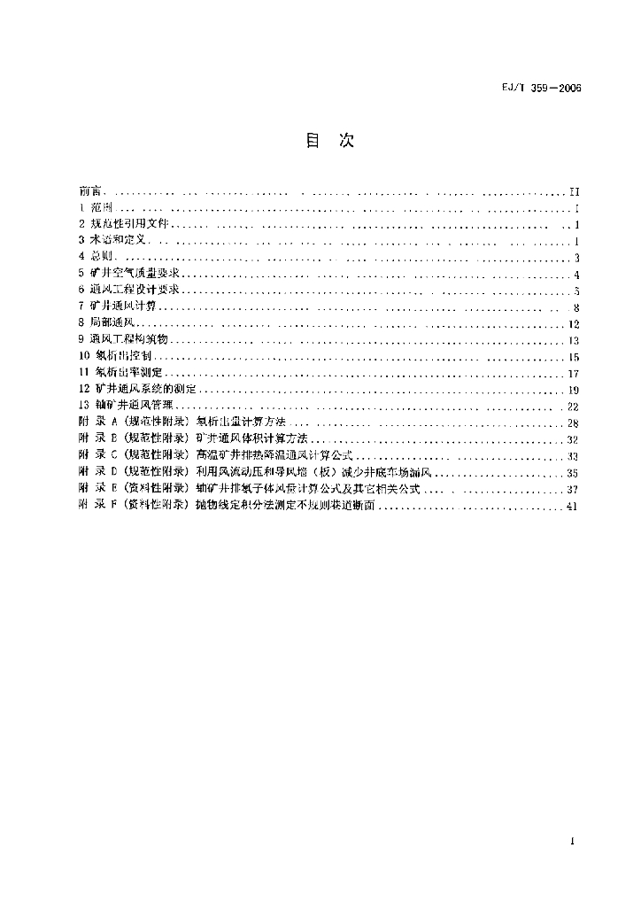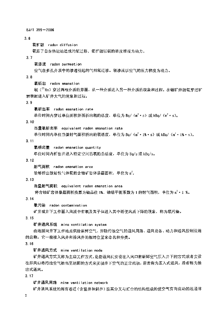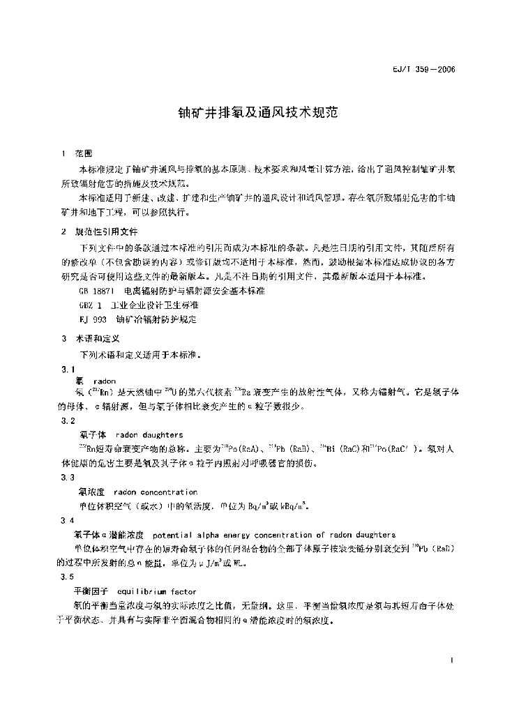 EJ/T 359-2006 铀矿井排氡通风技术规范