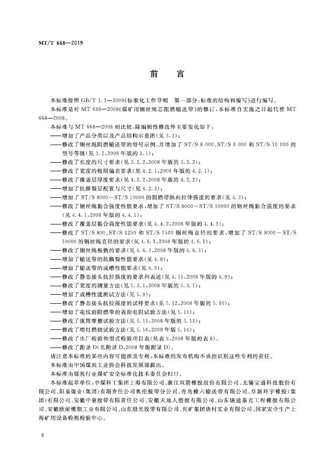 MT/T 668-2019 煤矿用钢丝绳芯阻燃输送带