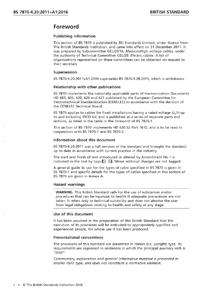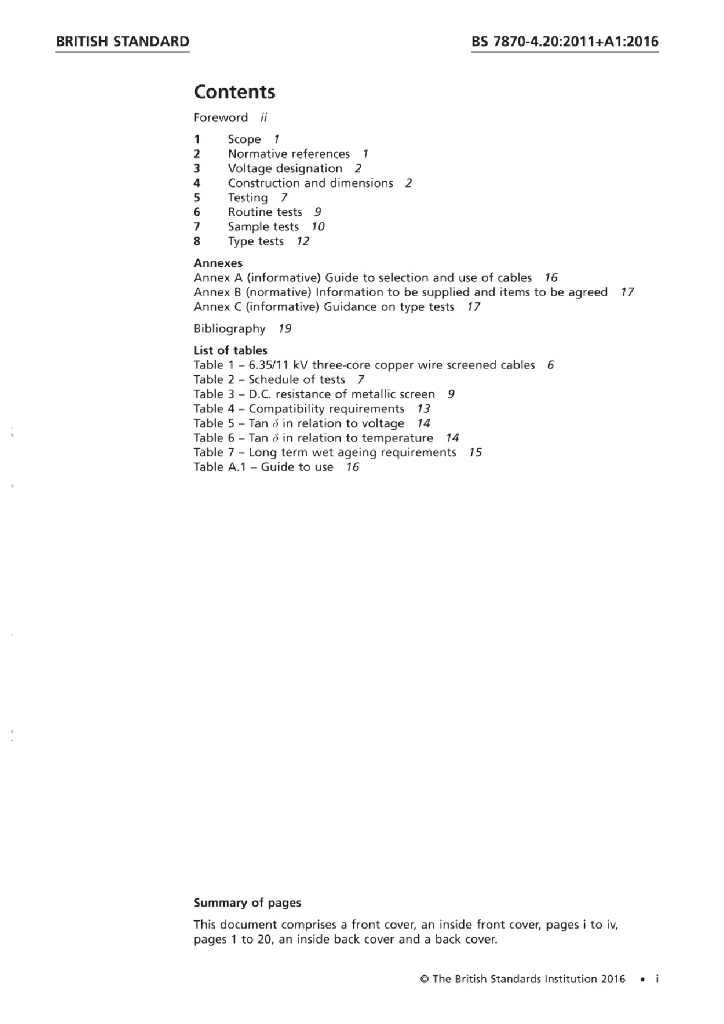 BS 7870-4.20:2011+A1:2016 用于配电和发电设备的低压和中压聚合物绝缘电缆 第4部分 额定电压为11千伏至33千伏的挤压绝缘配电电缆规范 第4.20节 三芯11KV电缆