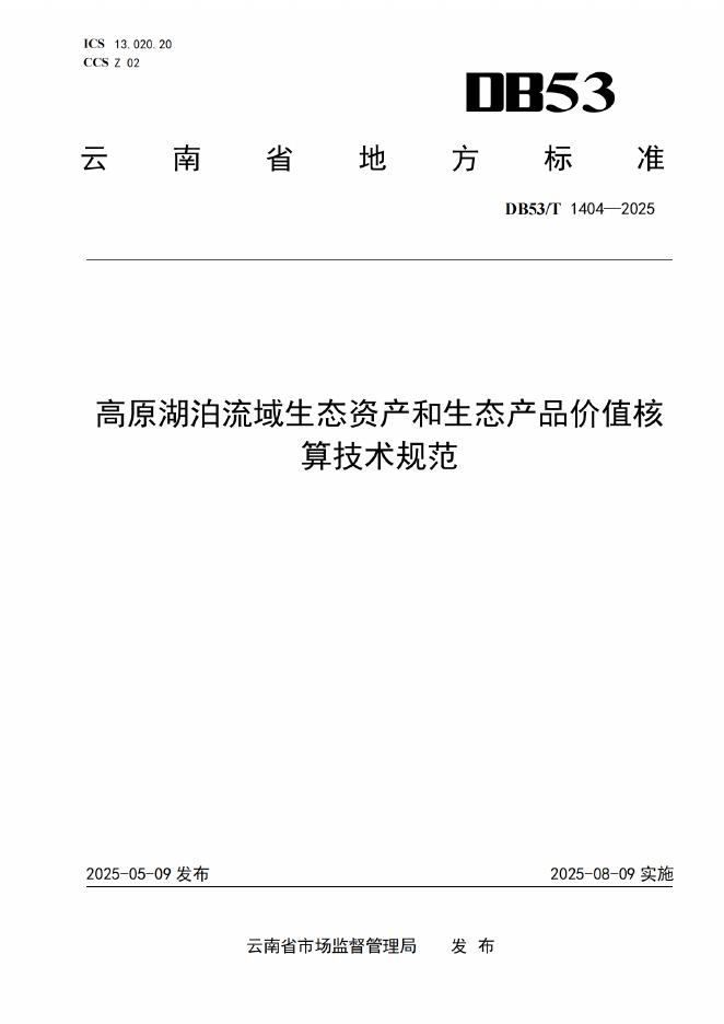 DB53/T 1404-2025 高原湖泊流域生态资产和生态产品价值核算技术规范