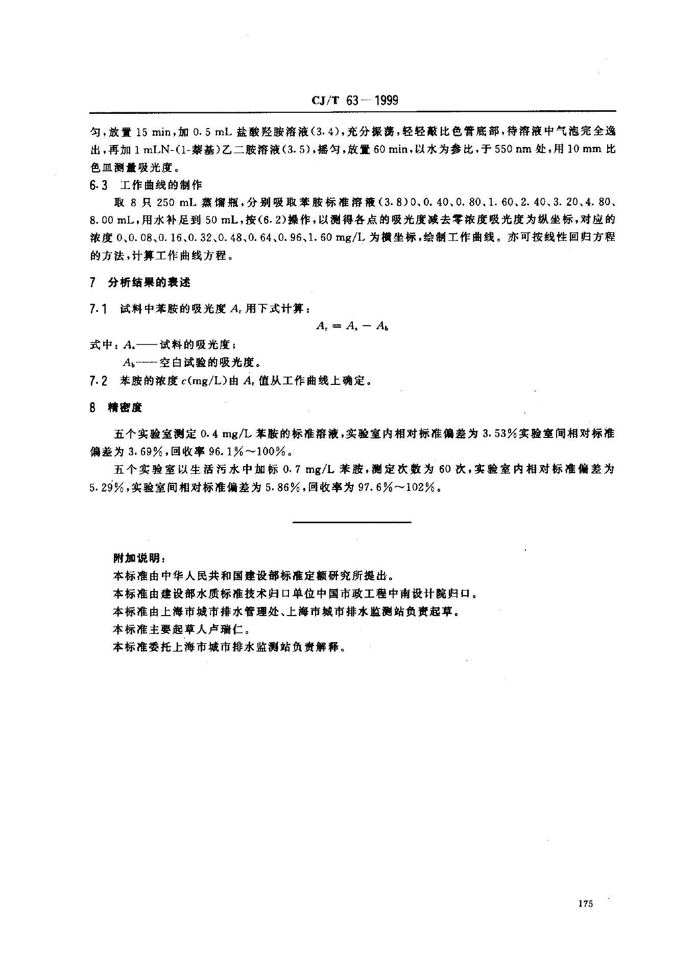 CJ/T 63-1999 城市污水 苯胺的测定 偶氮分光光度法