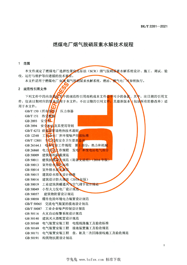 DL/T 2281-2021 燃煤电厂烟气脱硝尿素水解技术规程