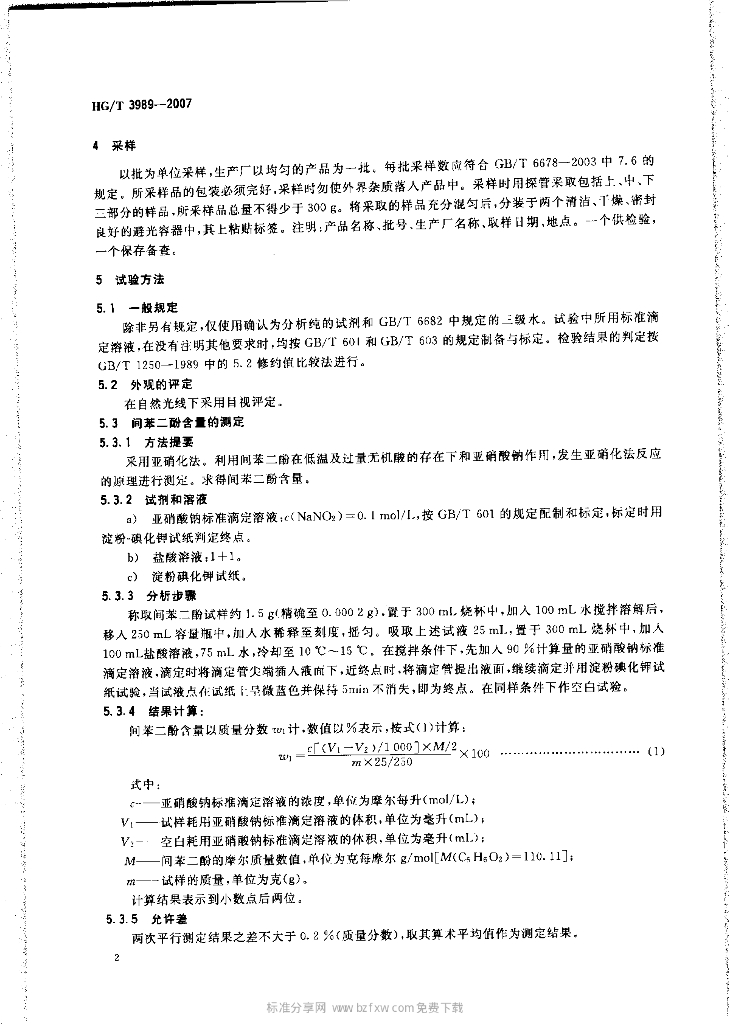 HG/T 3989-2007 间苯二酚(1,3-苯二酚)