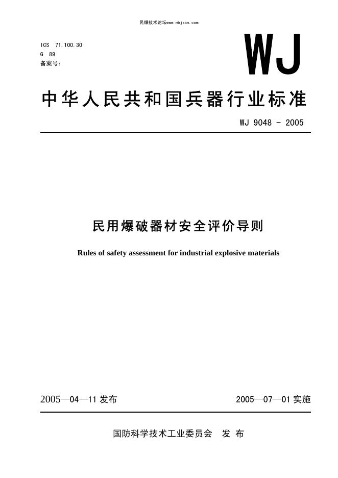 国防科学技术工业委员会民用爆破器材服务中心、中国兵器标准化研究所