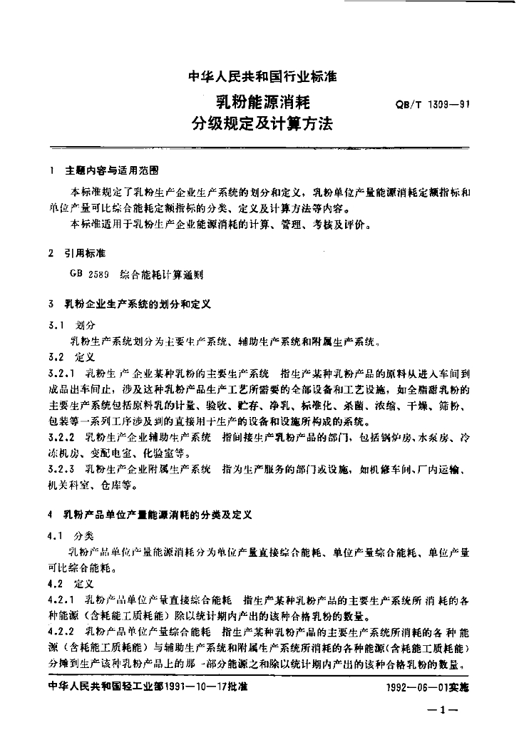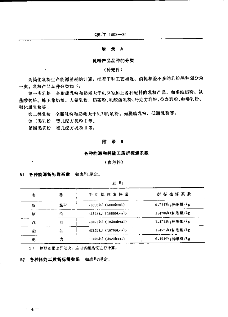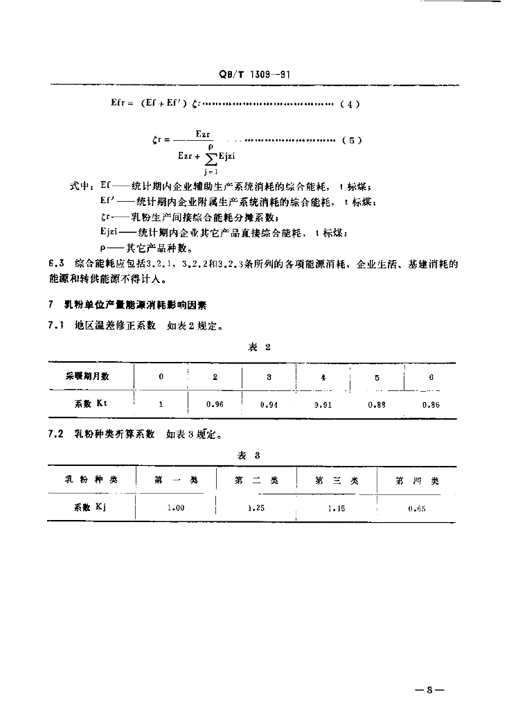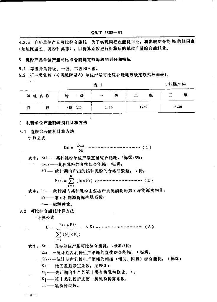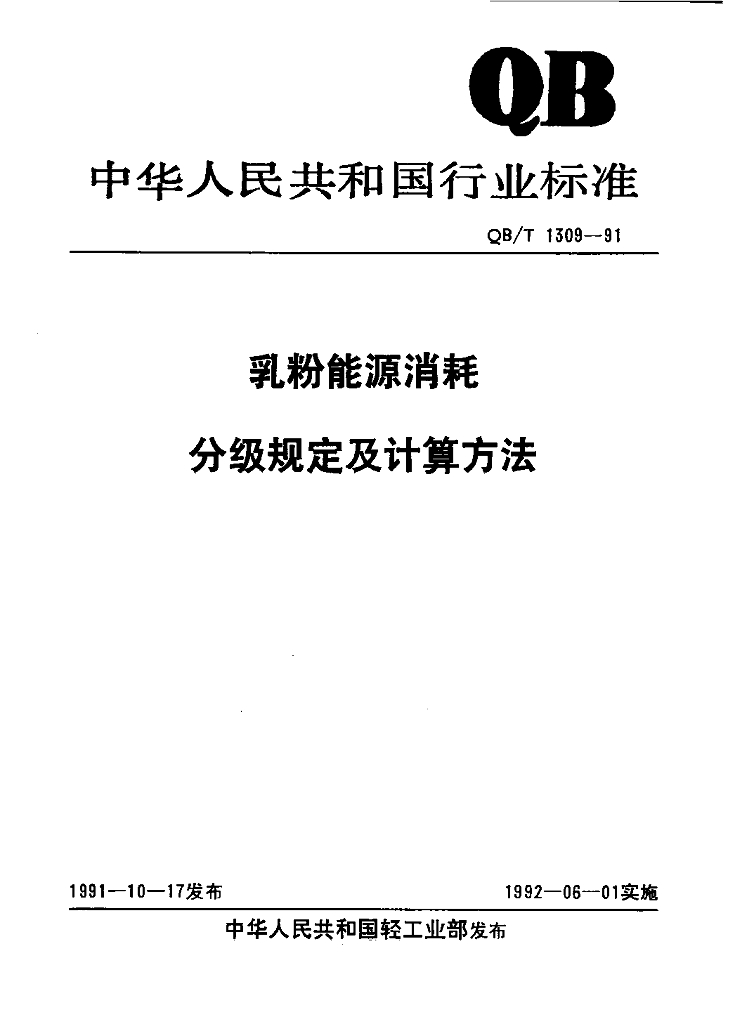 QB/T 1309-1991 乳粉能源消耗分级规定及计算方法
