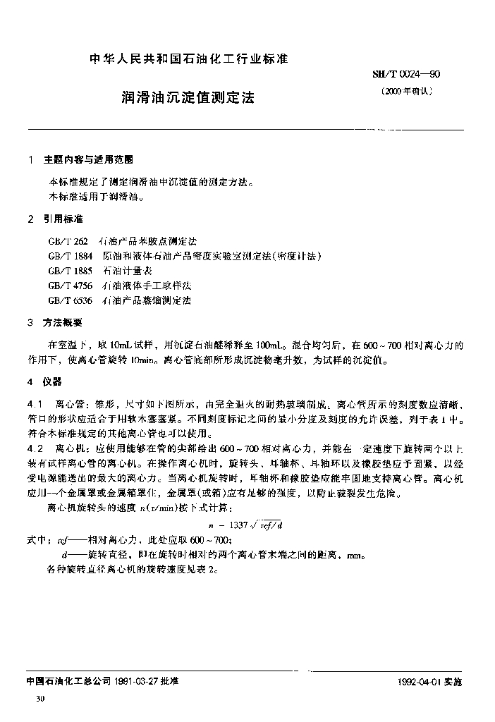 SH/T 0024-1990 润滑油沉淀值测定法