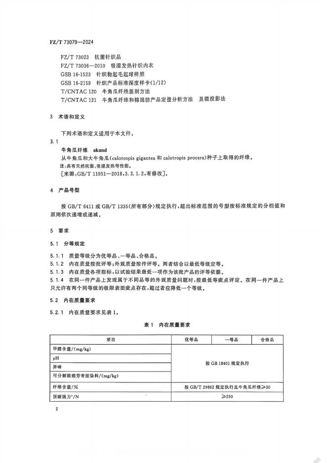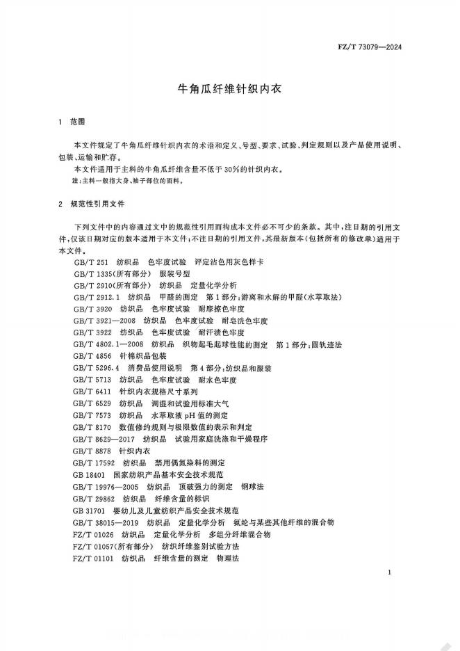 FZ/T 73079-2024 牛角瓜纤维针织内衣