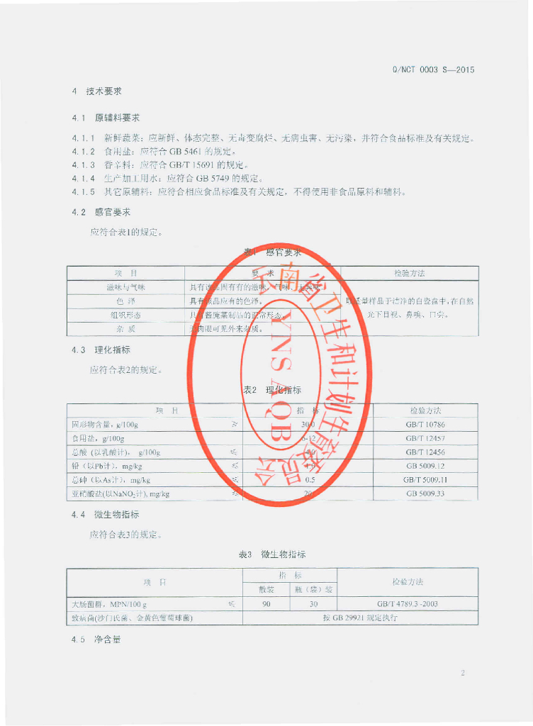 Q/NCT 0003S-2015 云南南华查姆农土特产综合开发有限公司 酱腌菜