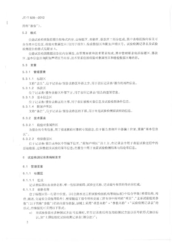 JT/T 828-2012 公路试验检测数据报告编制导则