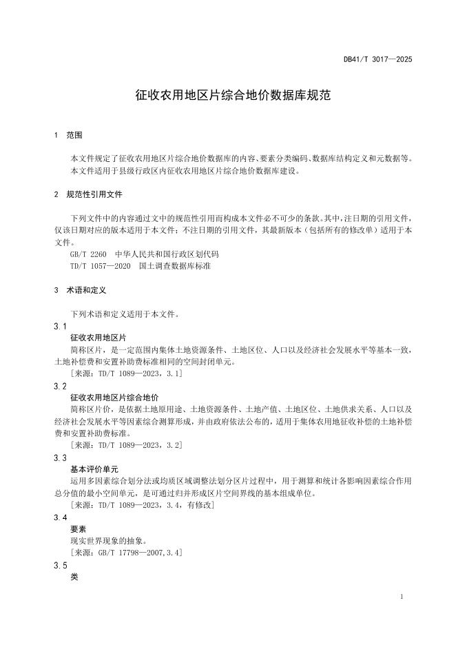 DB41/T 3017-2025 征收农用地区片综合地价数据库规范