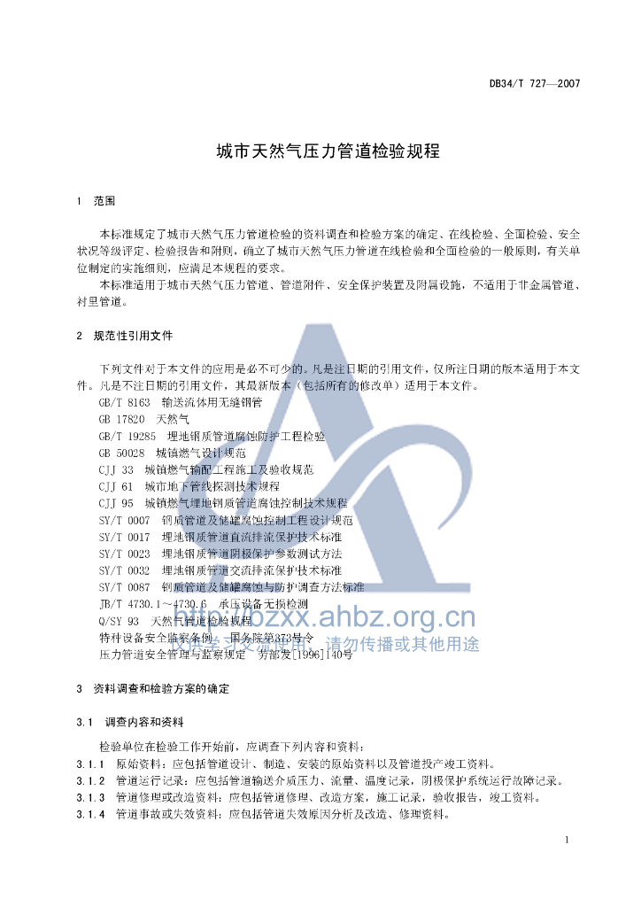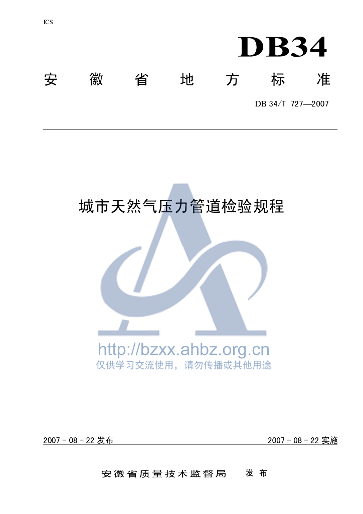DB34/T 727-2007 城市天然气压力管道检验规程