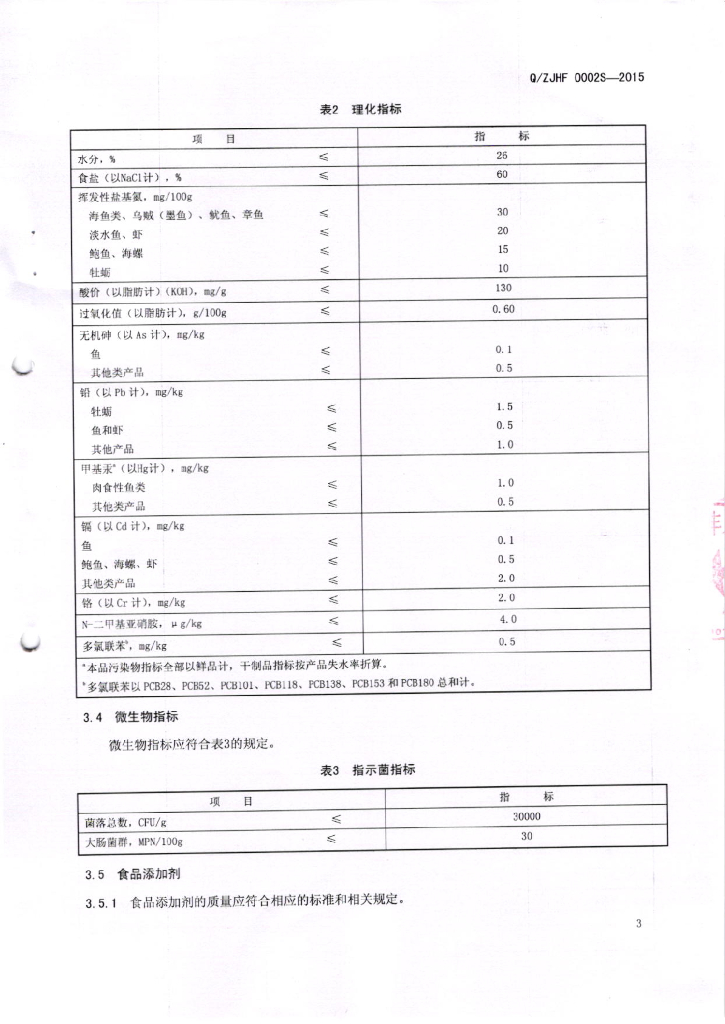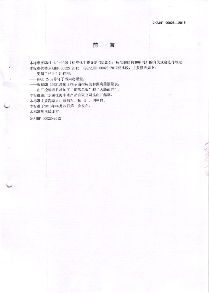 Q/ZJHF 0002S-2015 广东湛江海丰水产品有限公司 水产干制品