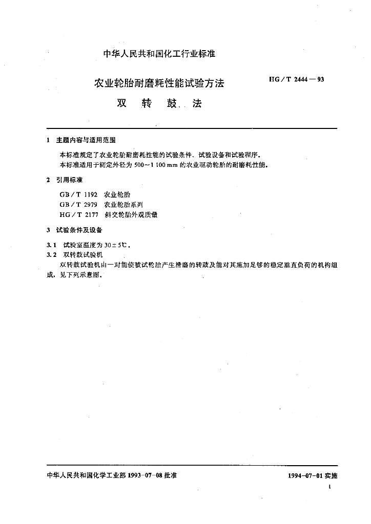 HG/T 2444-1993 农业轮胎耐磨耗性能试验方法 双转鼓法