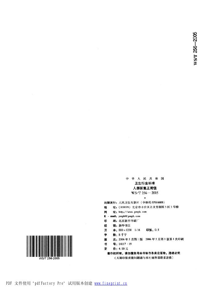 WS/T 256-2005 人群尿氟正常值