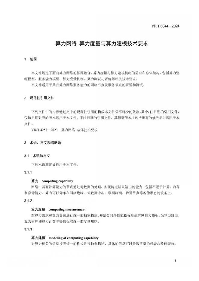YD/T 6044-2024 算力网络 算力度量与算力建模技术要求
