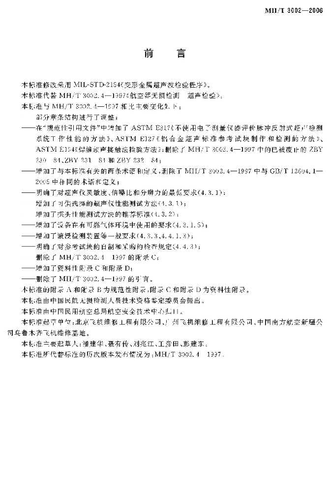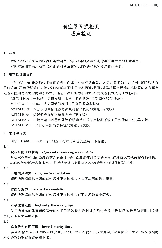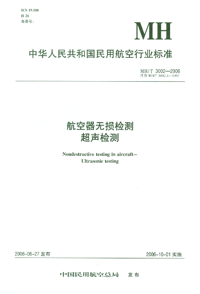 MH/T 3002-2006 航空器无损检测 超声检测