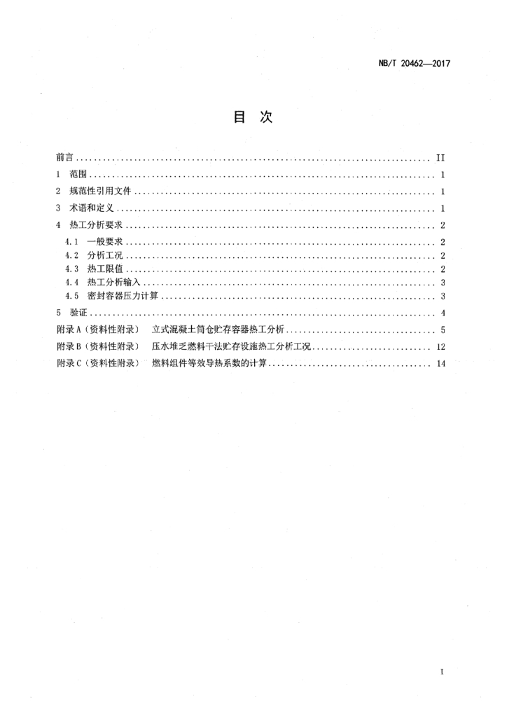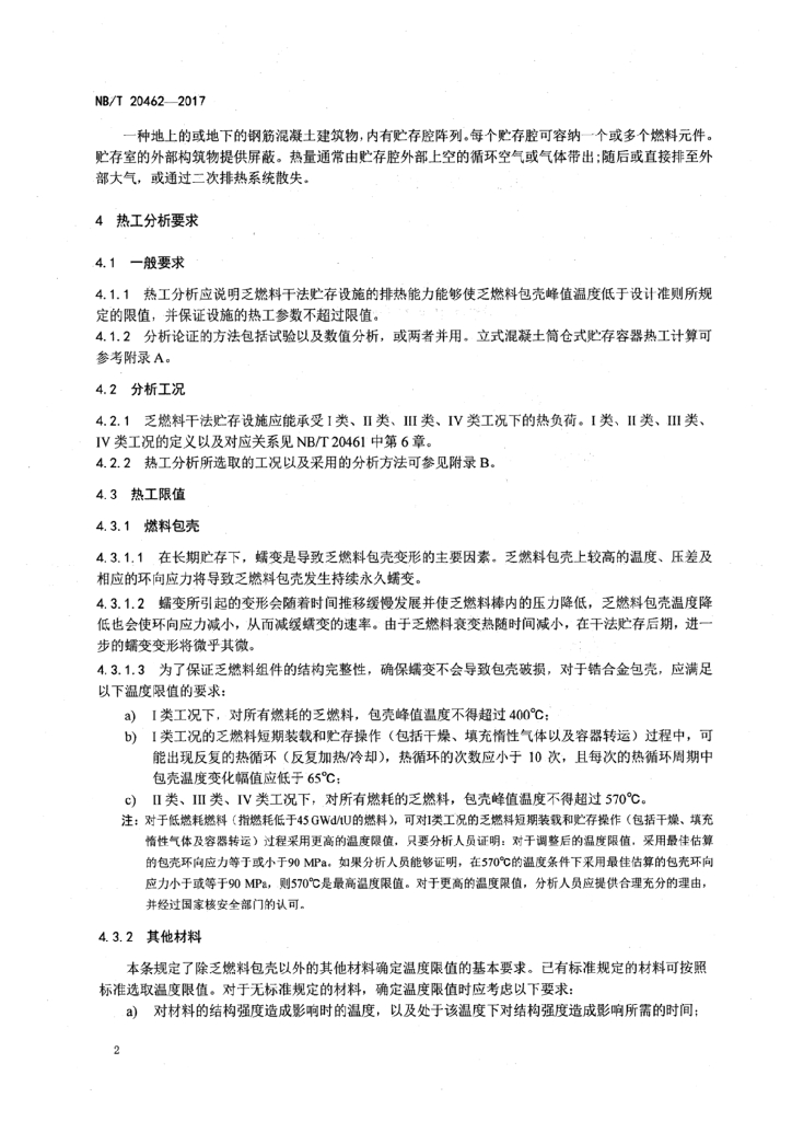 NB/T 20462-2017 压水堆乏燃料干法贮存设施热工分析