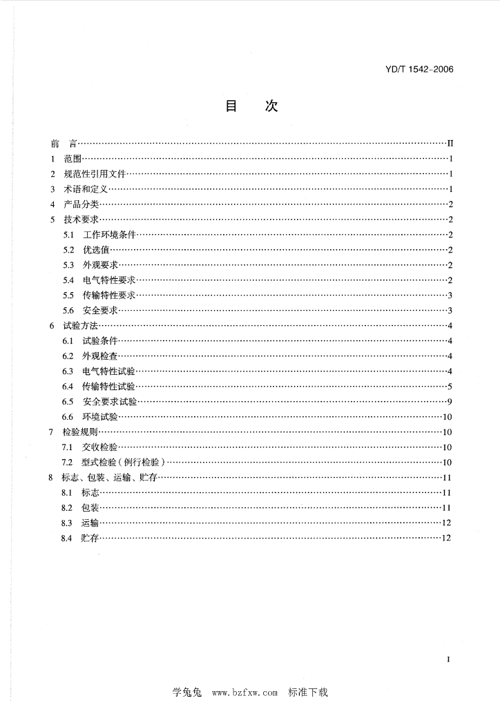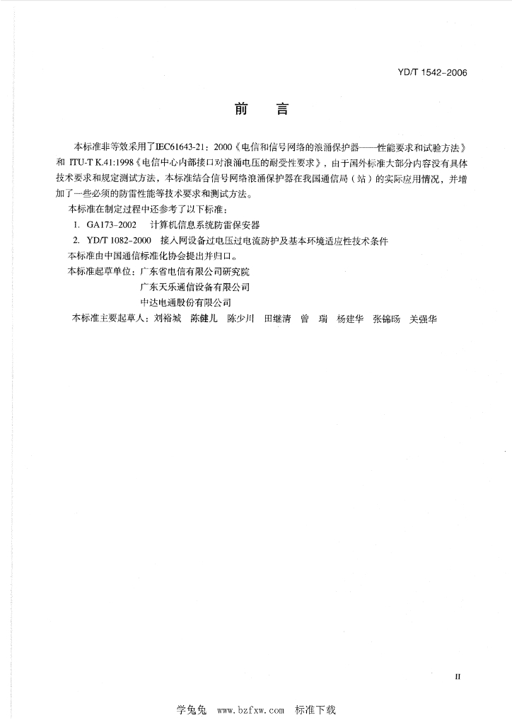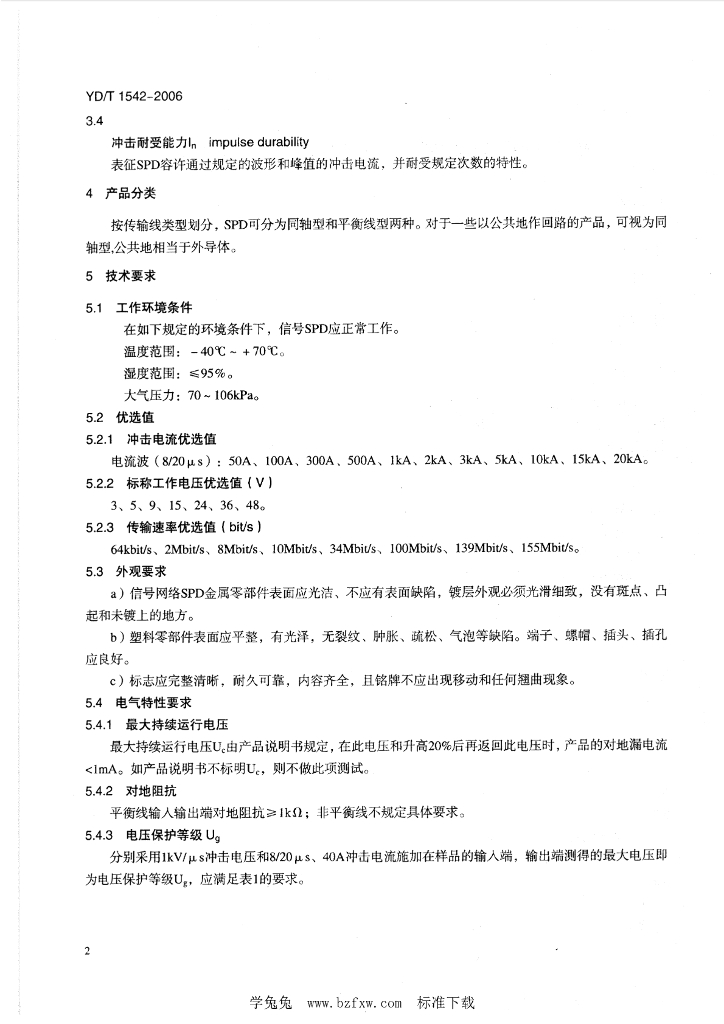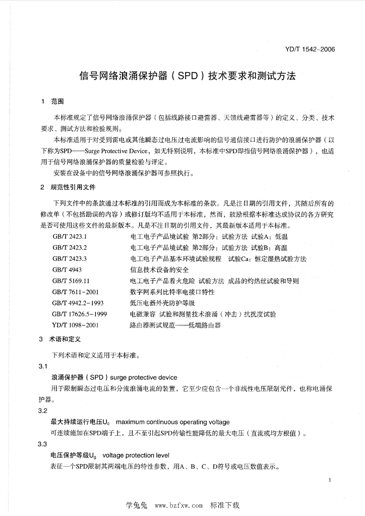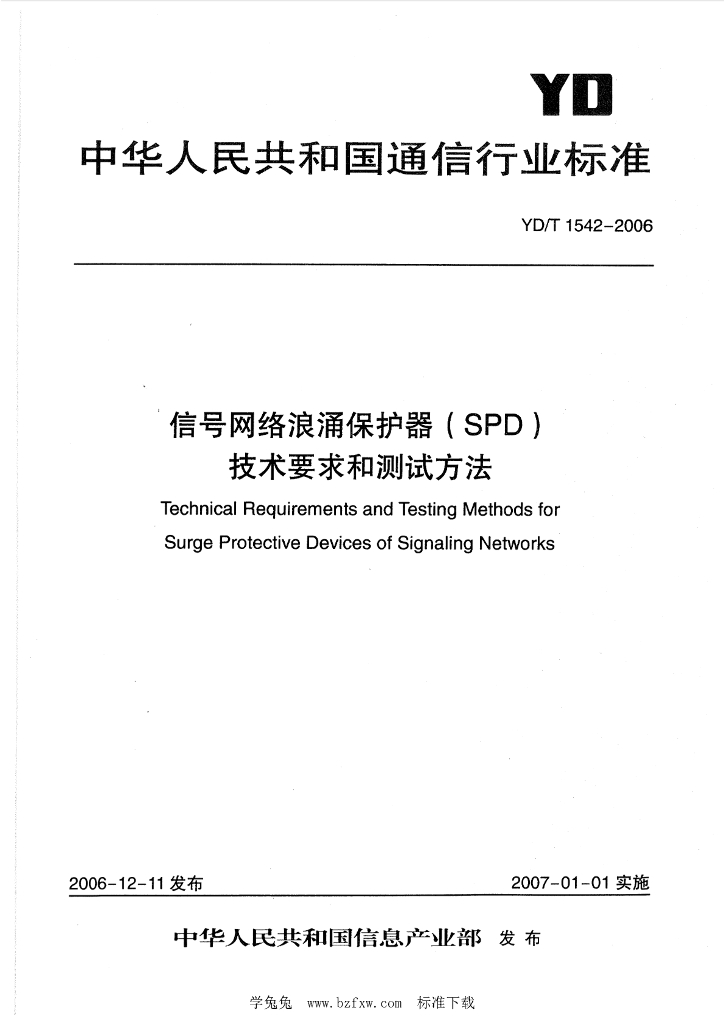 YD/T 1542-2006 信号网络浪涌保护器(SPD)技术要求和测试方法