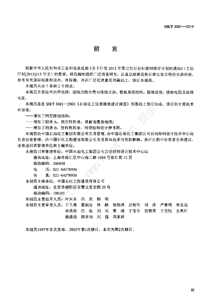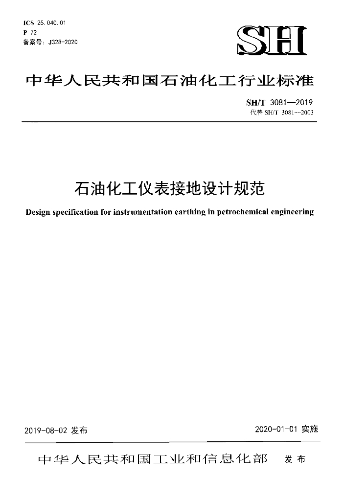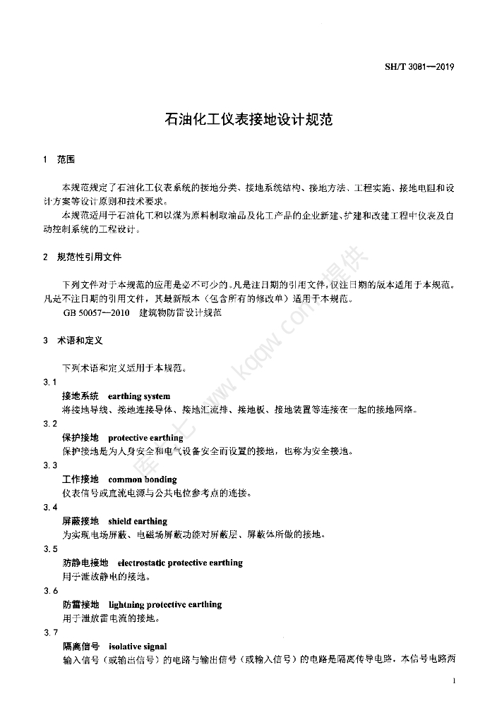 SH/T 3081-2019 石油化工仪表接地设计规范