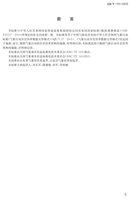 QX/T 115-2010 酸雨气象台站历史沿革数据文件格式