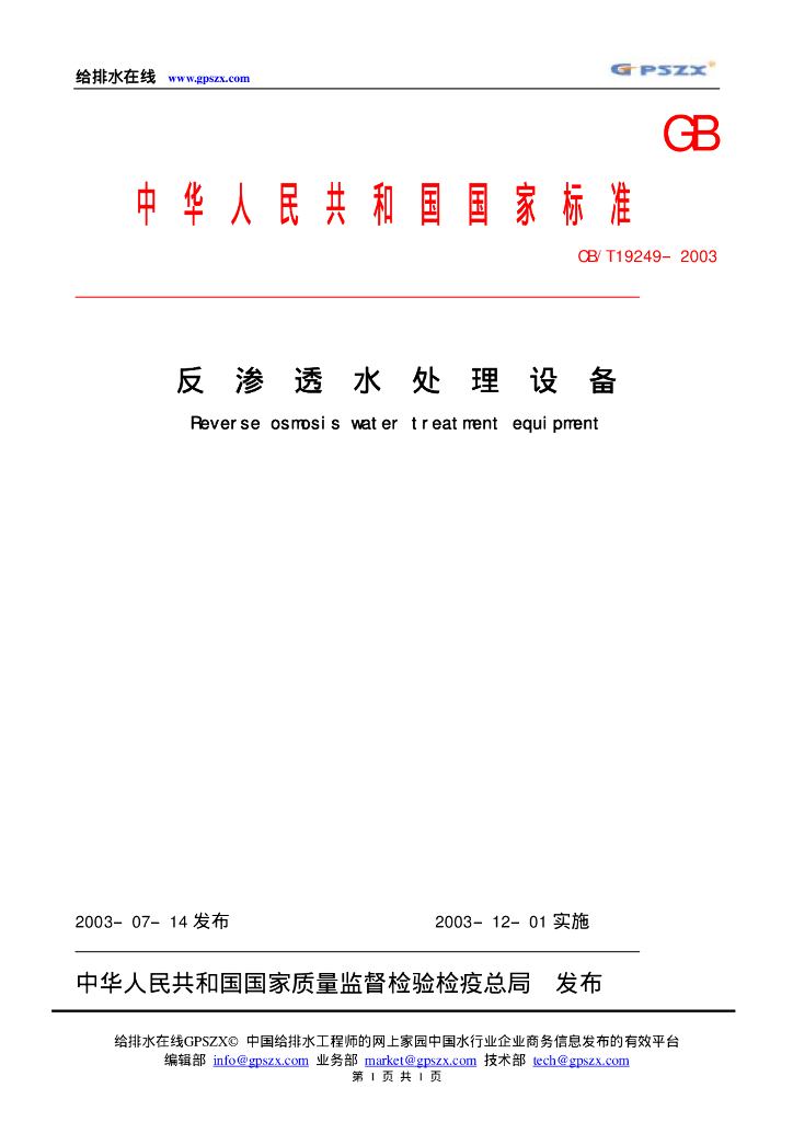 CB/T 19249-2003 反渗透水理设备