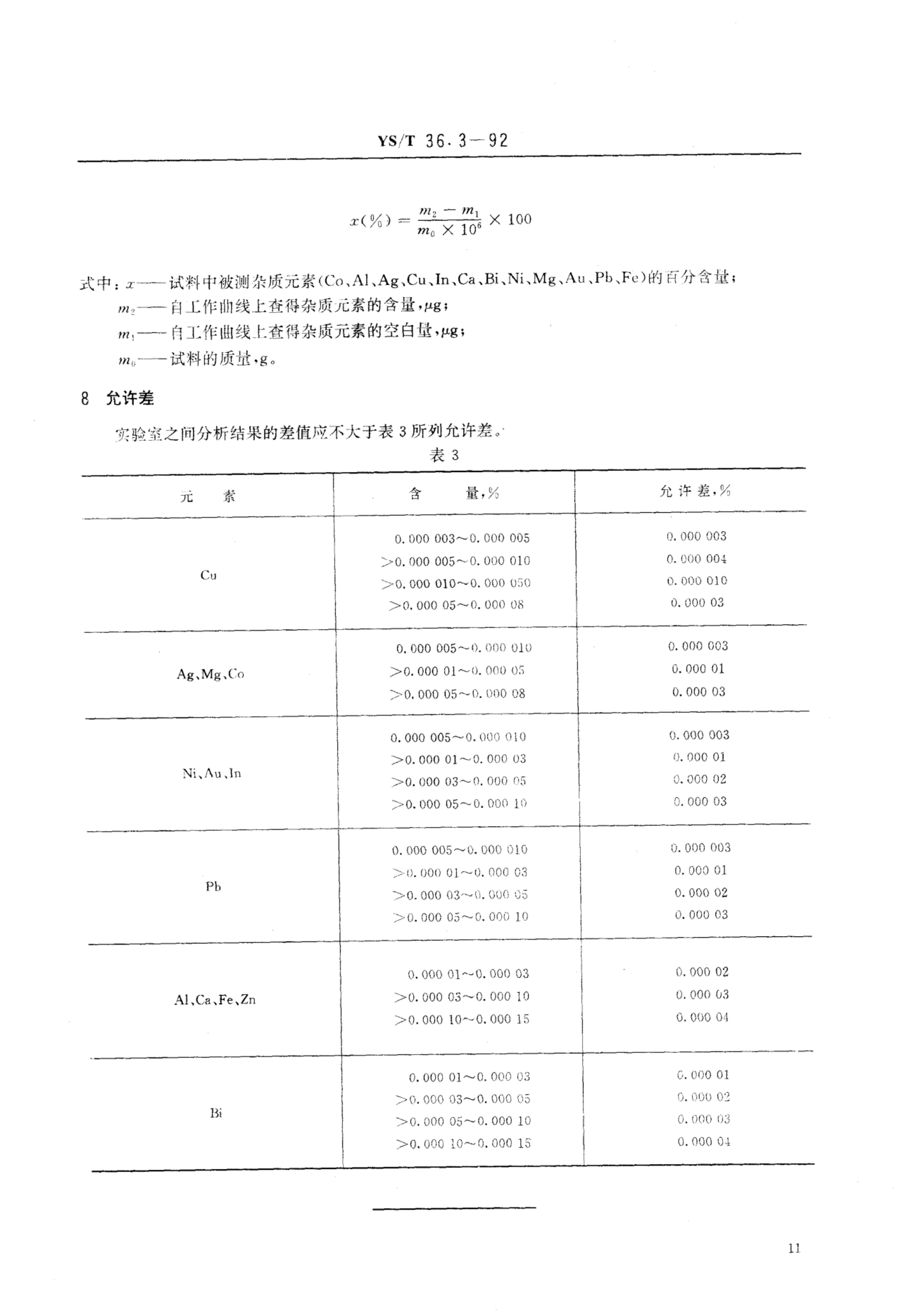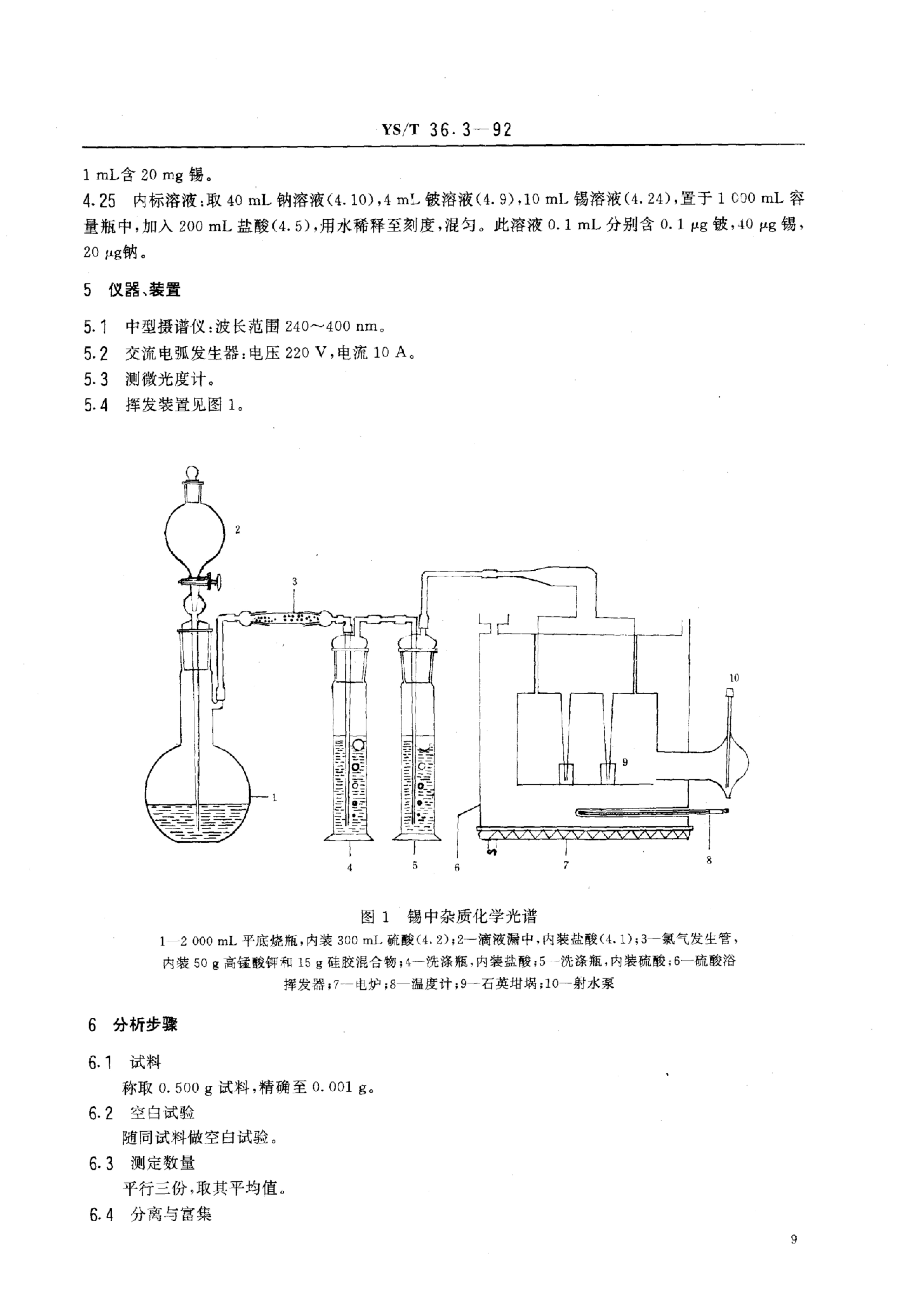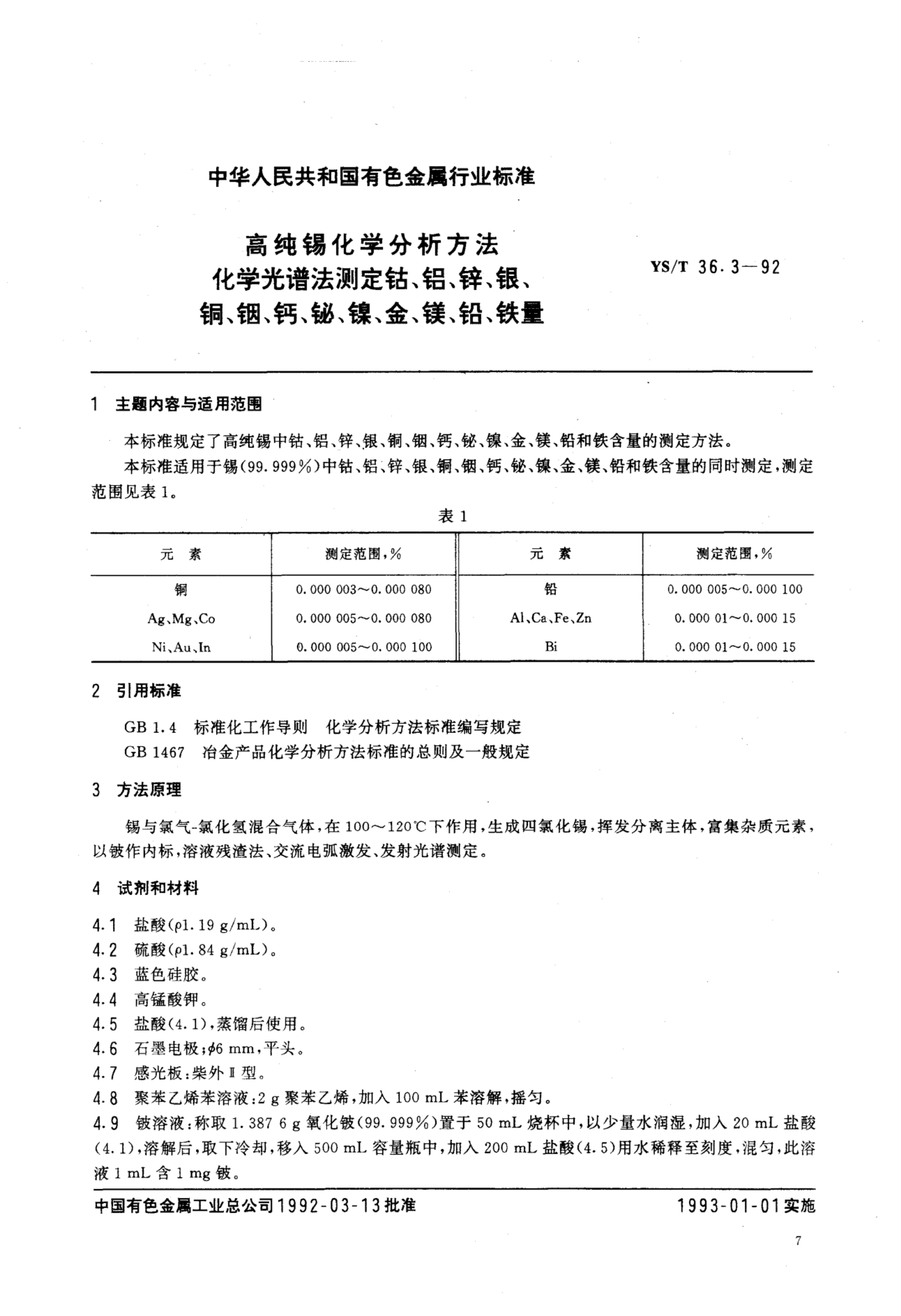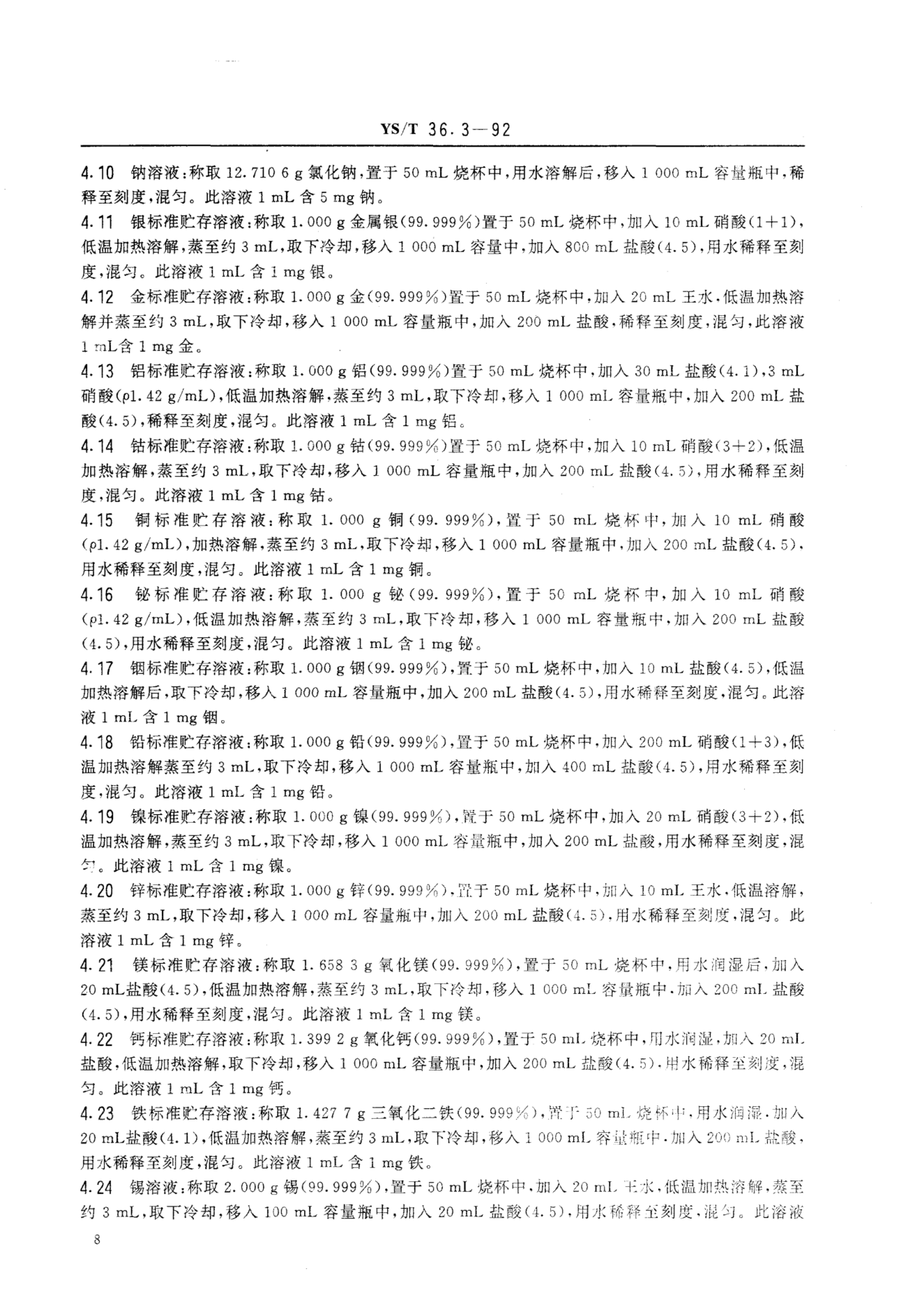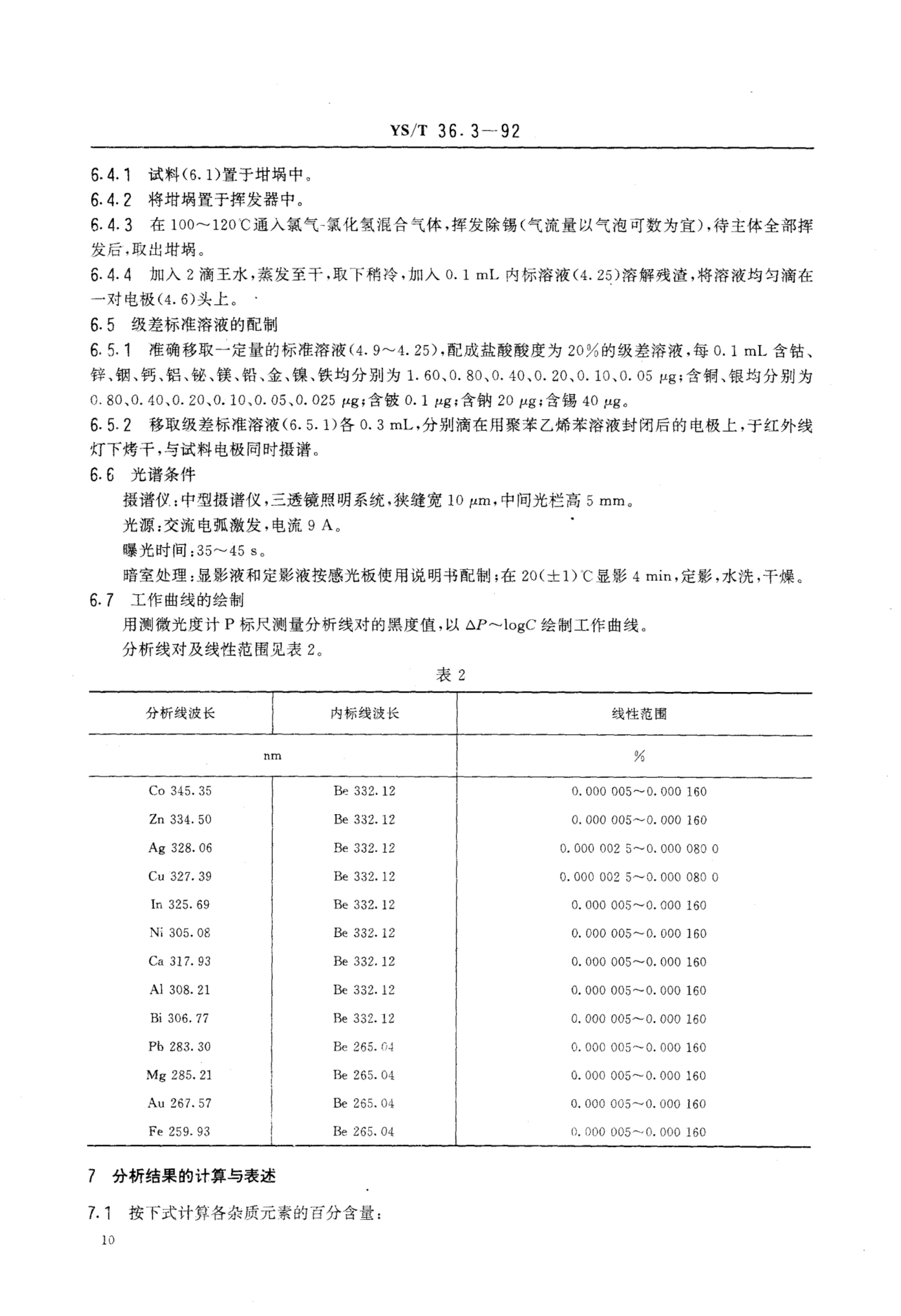 YS/T 36.3-1992 高纯锡化学分析方法化学光谱法测定钴,铝,锌银,铜,铟,钙,铋,镍,金,镁、铅、铁量