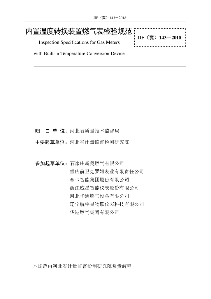 JJF(冀)143-2018 内置温度转换装置燃气表检验规范