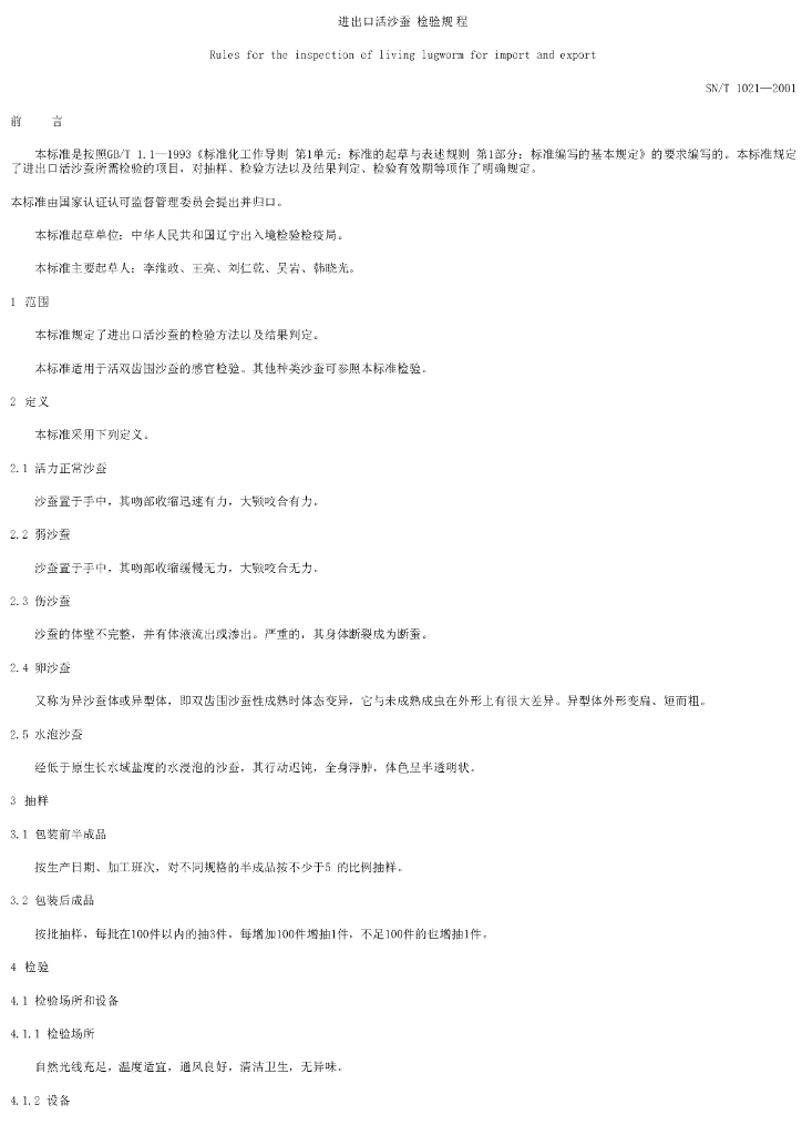 SN/T 1021-2001 进出口活沙蚕检验规程