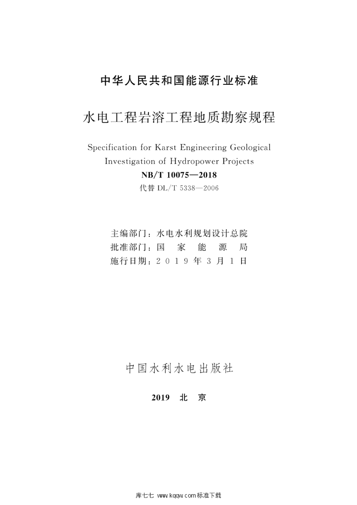 NB/T 10075-2018 水电工程岩溶工程地质勘察规程