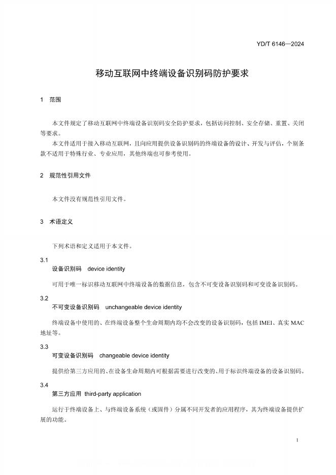 YD/T 6146-2024 移动互联网中终端设备识别码防护要求