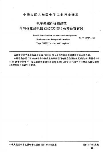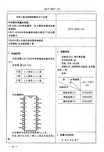 SJ/T 10071-1991 半导体集成电路CH2022型4位移位寄存器详细规范