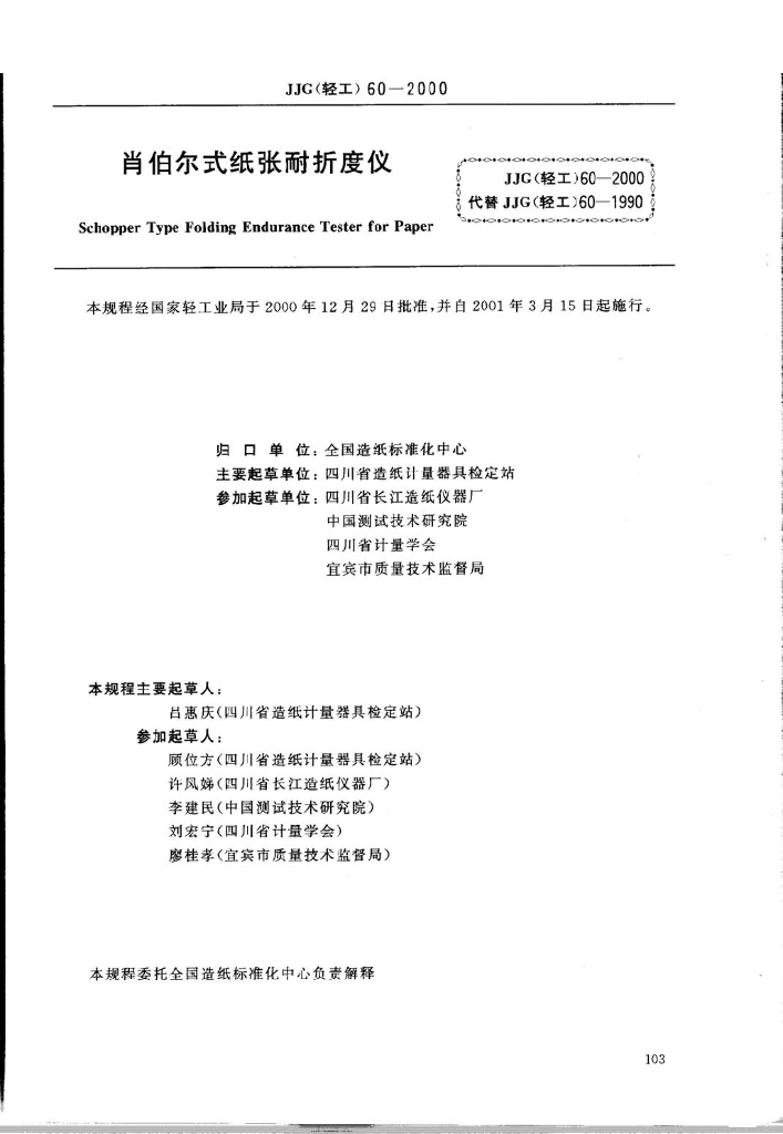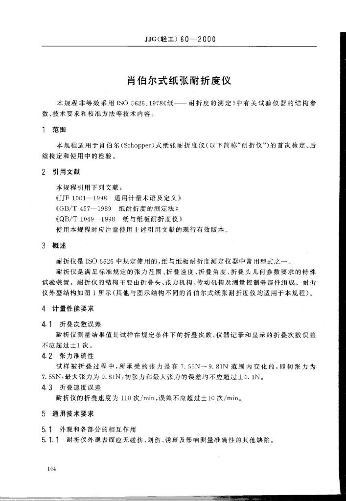 JJG 60-2000 肖伯尔式纸张耐折度仪