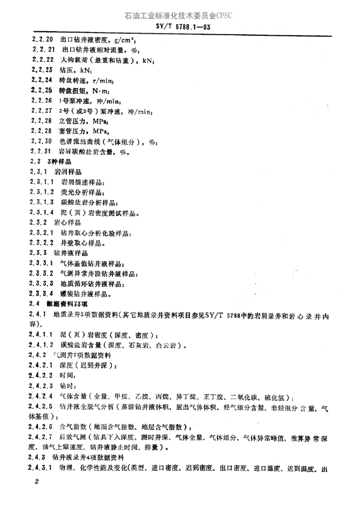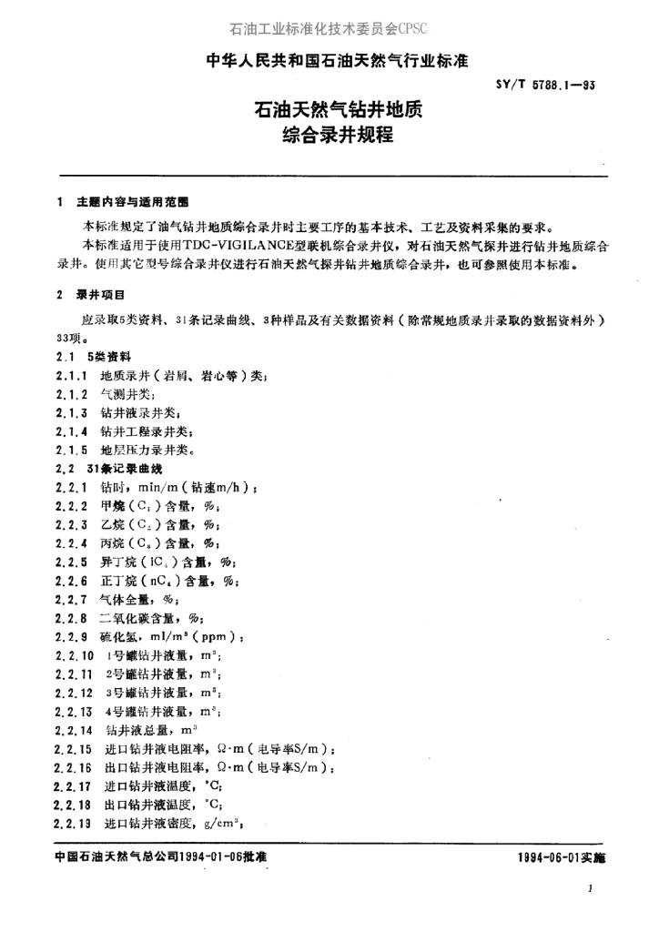 SY/T 5788-1993 石油天然气钻井地质常规录井规程