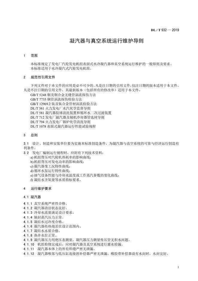 DL/T 932-2019 凝汽器与真空系统运行维护导则