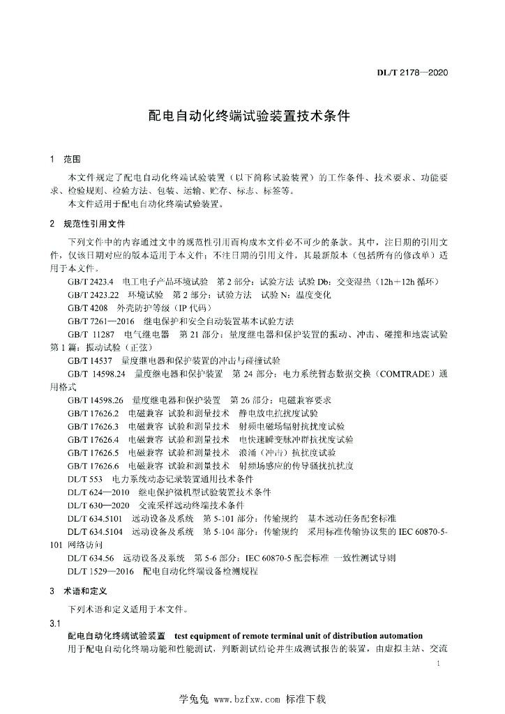 DL/T 2178-2020 配电自动化终端试验装置技术条件