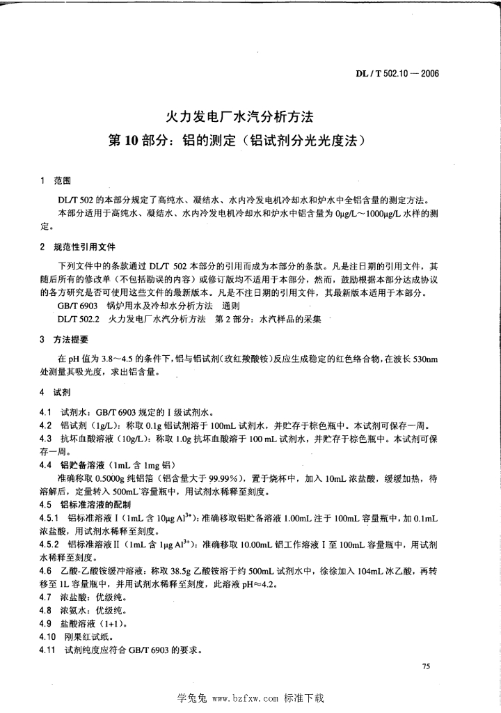 DL/T 502.10-2006 火力发电厂水汽分析方法 第10部分:铝的测定(铝试剂分光光度法)