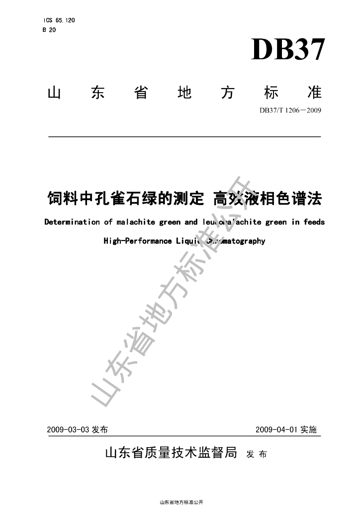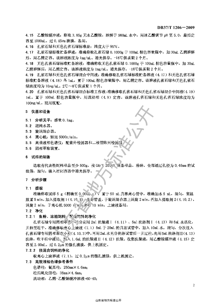 DB37/T 1206-2009 饲料中孔雀石绿的测定 高效液相色谱法