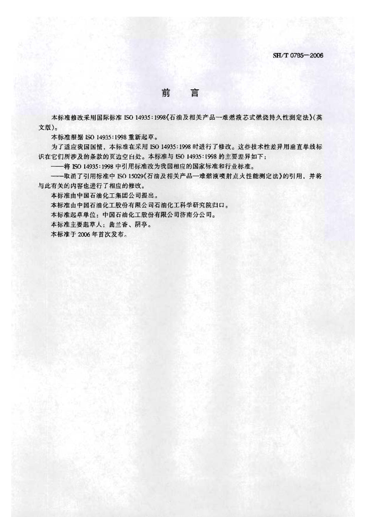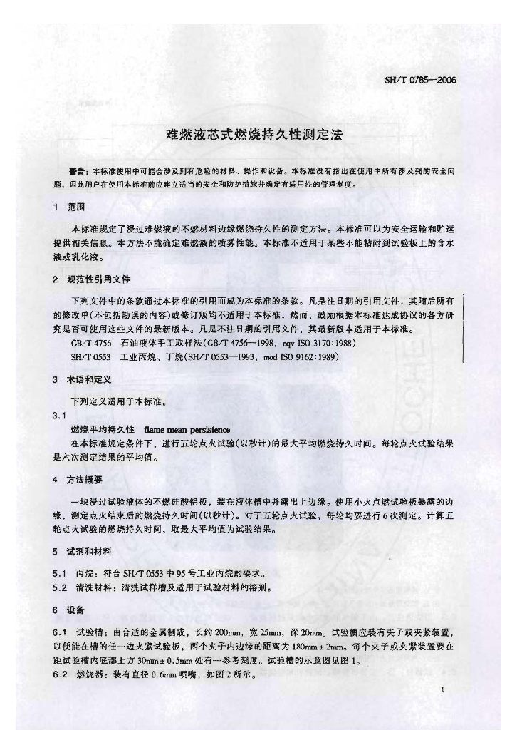 SH/T 0785-2006 难燃液芯式燃烧持久性测定法