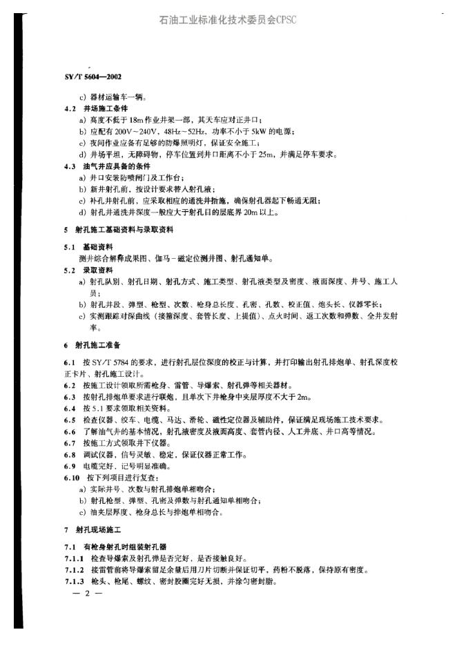 SY/T 5604-1993 常规射孔作业技术规程