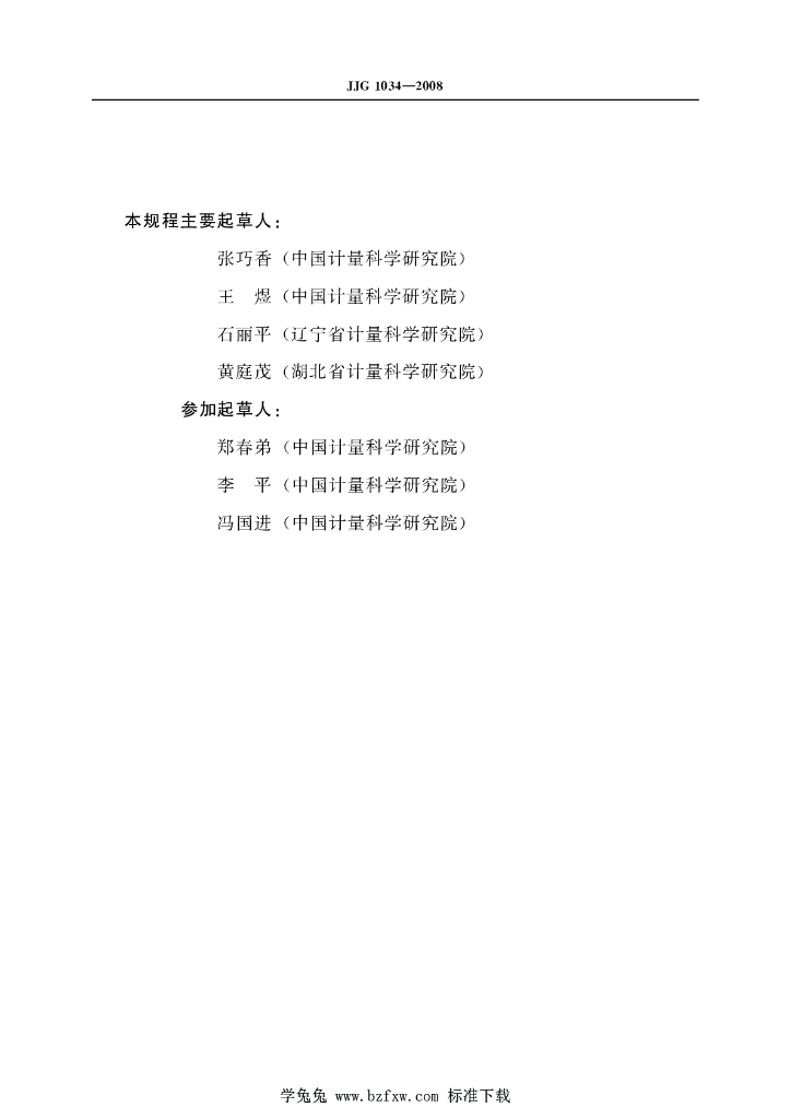 张巧香(中国计量科学研究院)、王煜(中国计量科学研究院)、石丽平(辽宁省计量科学研究院)、黄庭茂(湖北省计量科学研究院)、郑春弟(中国计量科学研究院)、李平(中国计量科学研究院)、冯国进(中国计量科学研究院)