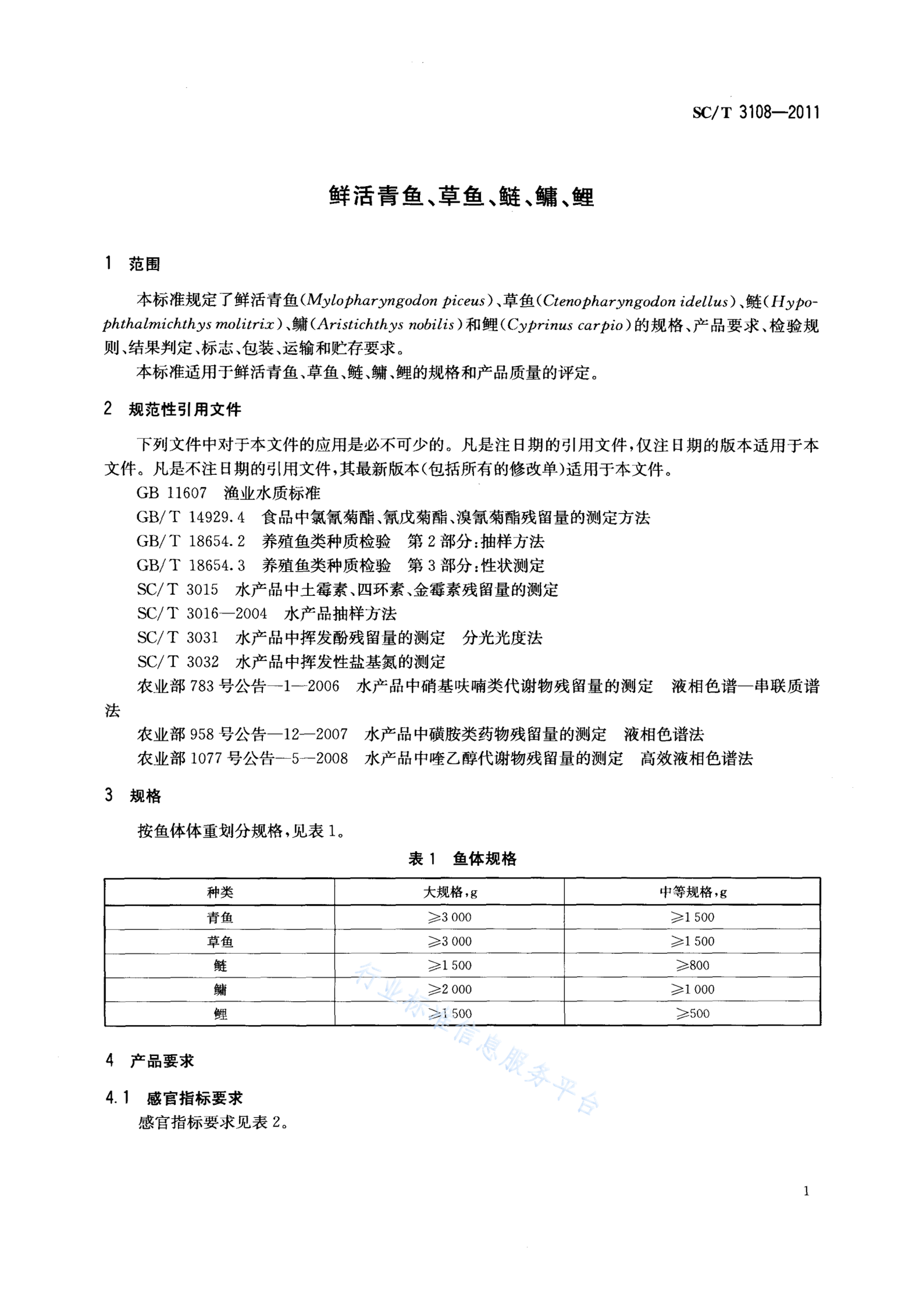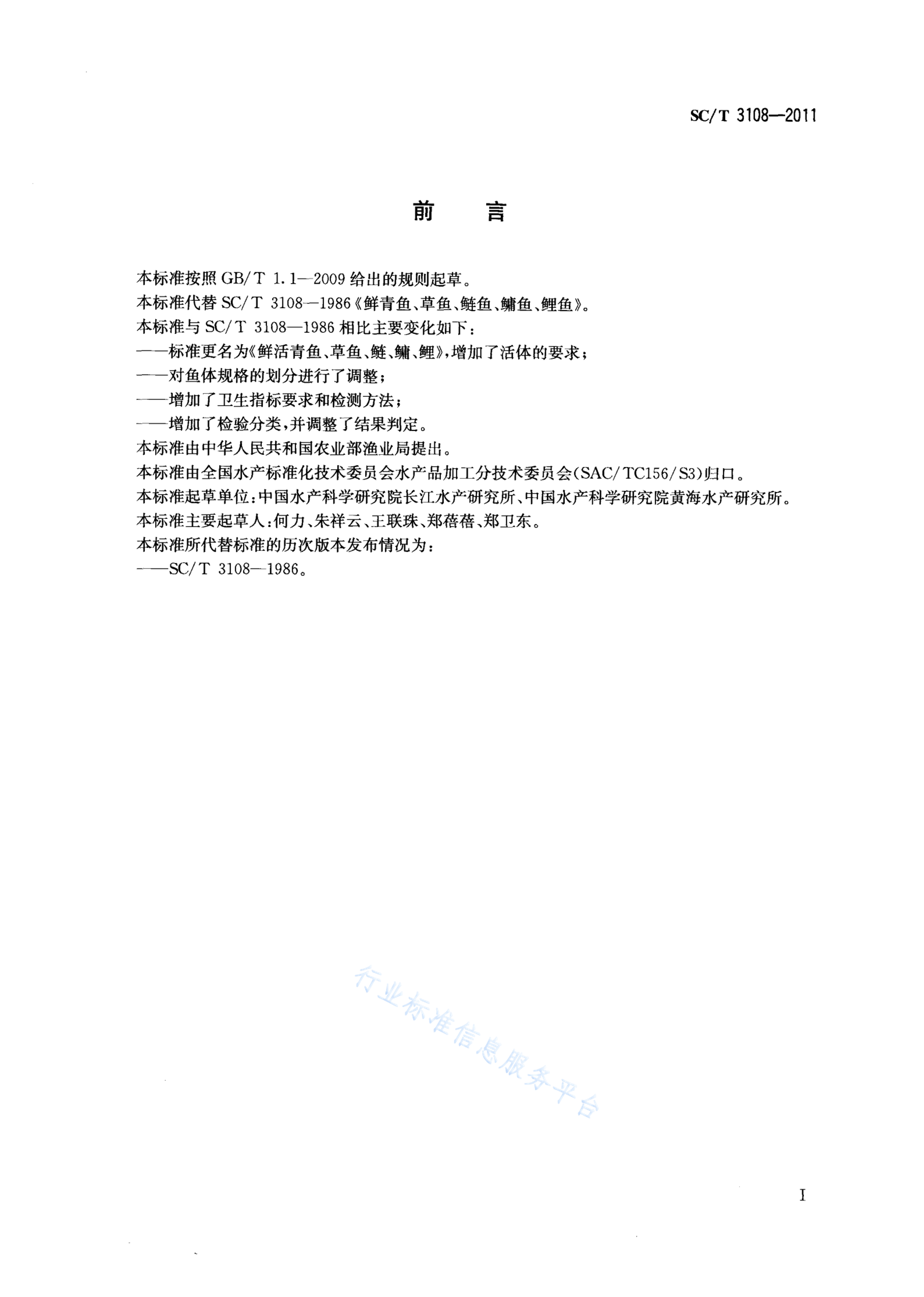 SC/T 3108-2011 鲜活青鱼、草鱼、鲢、鳙、鲤
