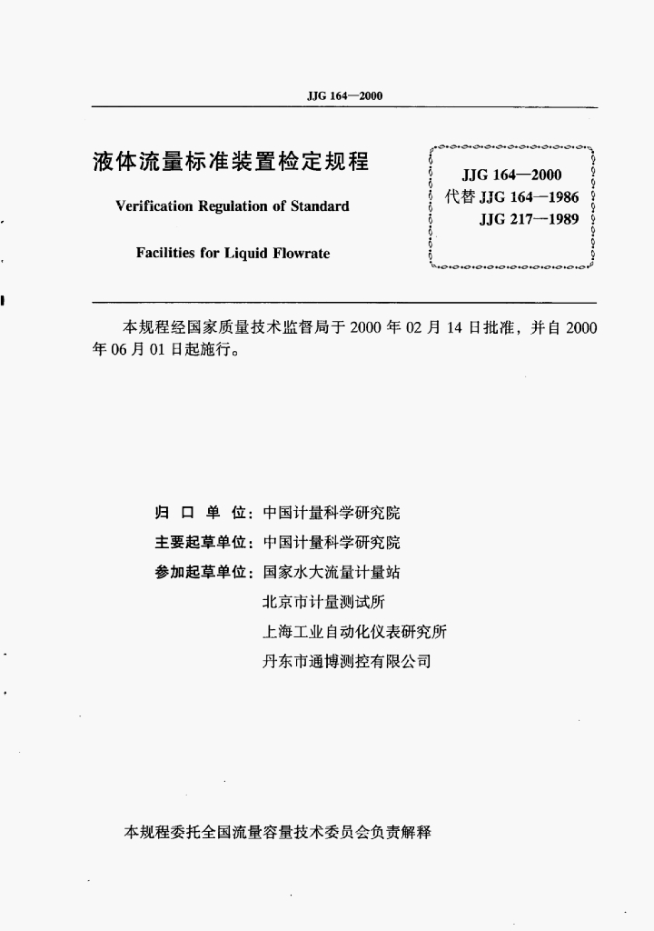 - 代替标准:JJG 164-1986、JJG 217-1989、JJG 162-1985