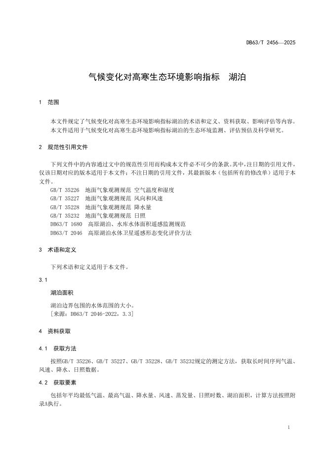 DB63/T 2456-2025 气候变化对高寒生态环境影响指标 湖泊