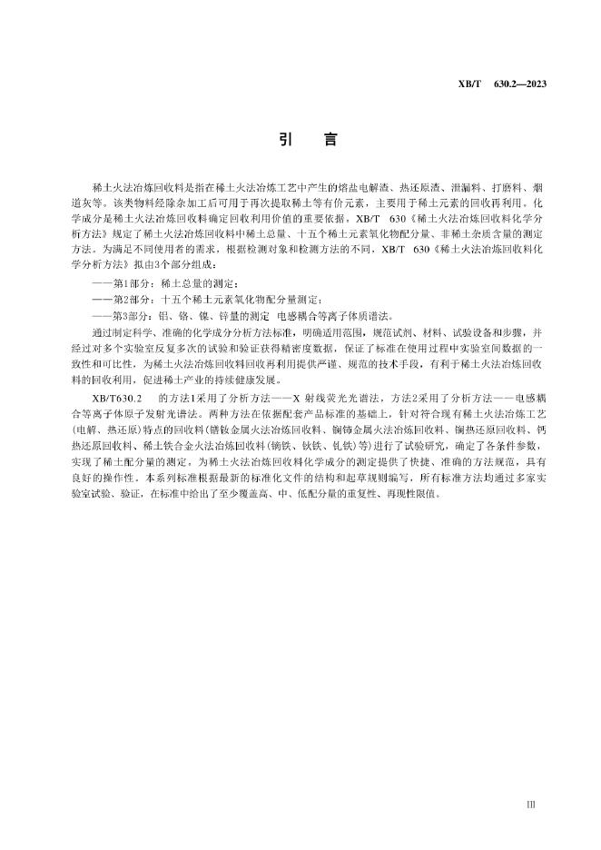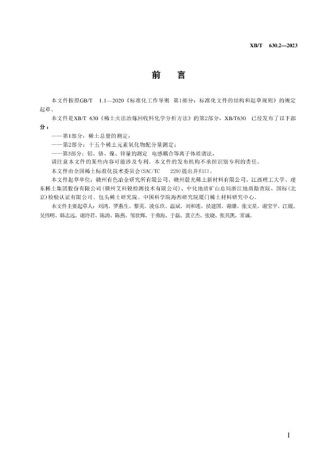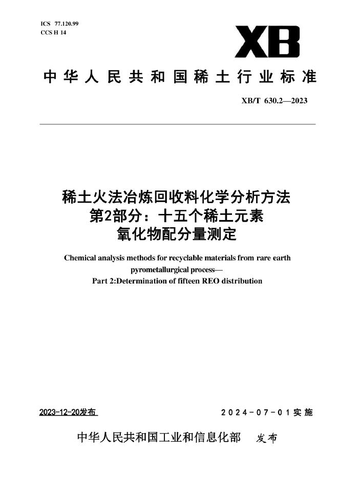 XB/T 630.2-2023 稀土火法冶炼回收料化学分析方法 第2部分:十五个稀土元素氧化物配分量测定
