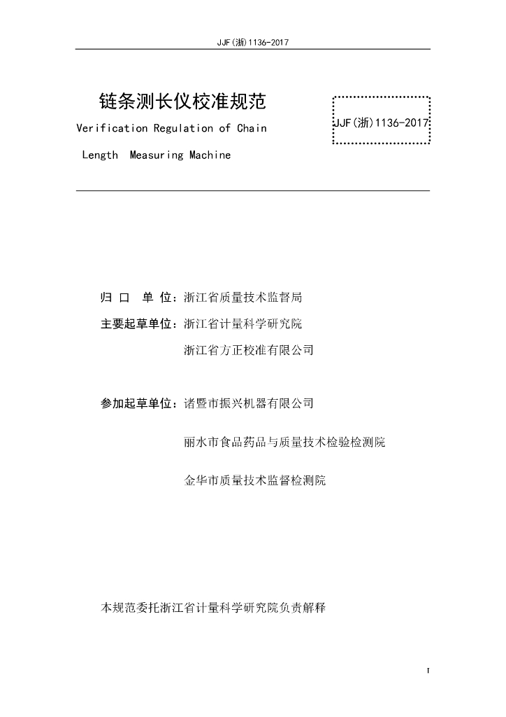 浙江省计量科学研究院、浙江省方正校准有限公司、诸暨市振兴机器有限公司、丽水市食品药品与质量技术检验检测院、金华市质量技术监督检测院