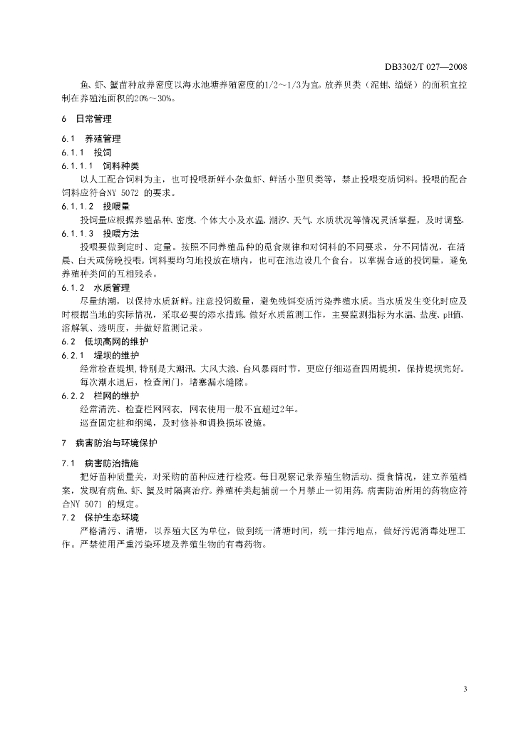 DB3302/T 027-2008 滩涂低坝高网养殖技术规范