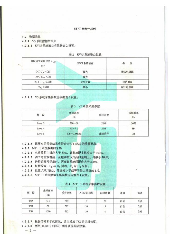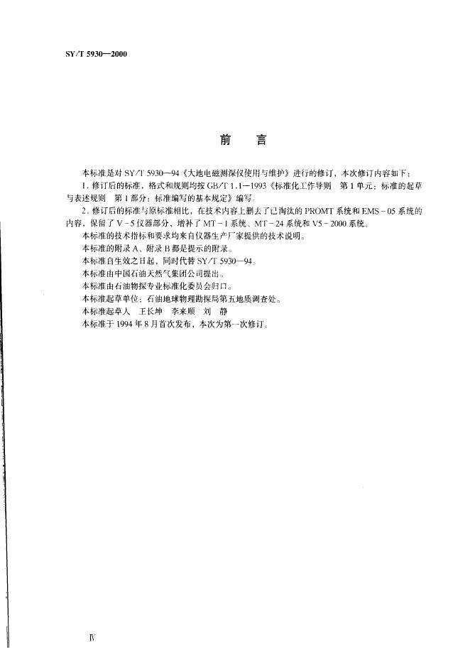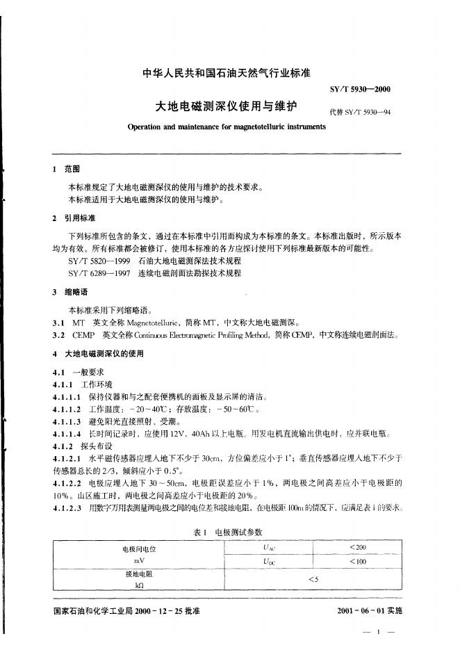SY/T 5930-1994 大地电磁测深仪使用与维护
